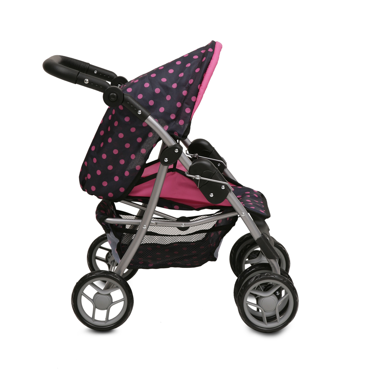Suitable for children over 3 years. Doll pram with adjustable handle bar and canopy. Easy to folding. With luggage basket. The backrest has several position of adjustment.