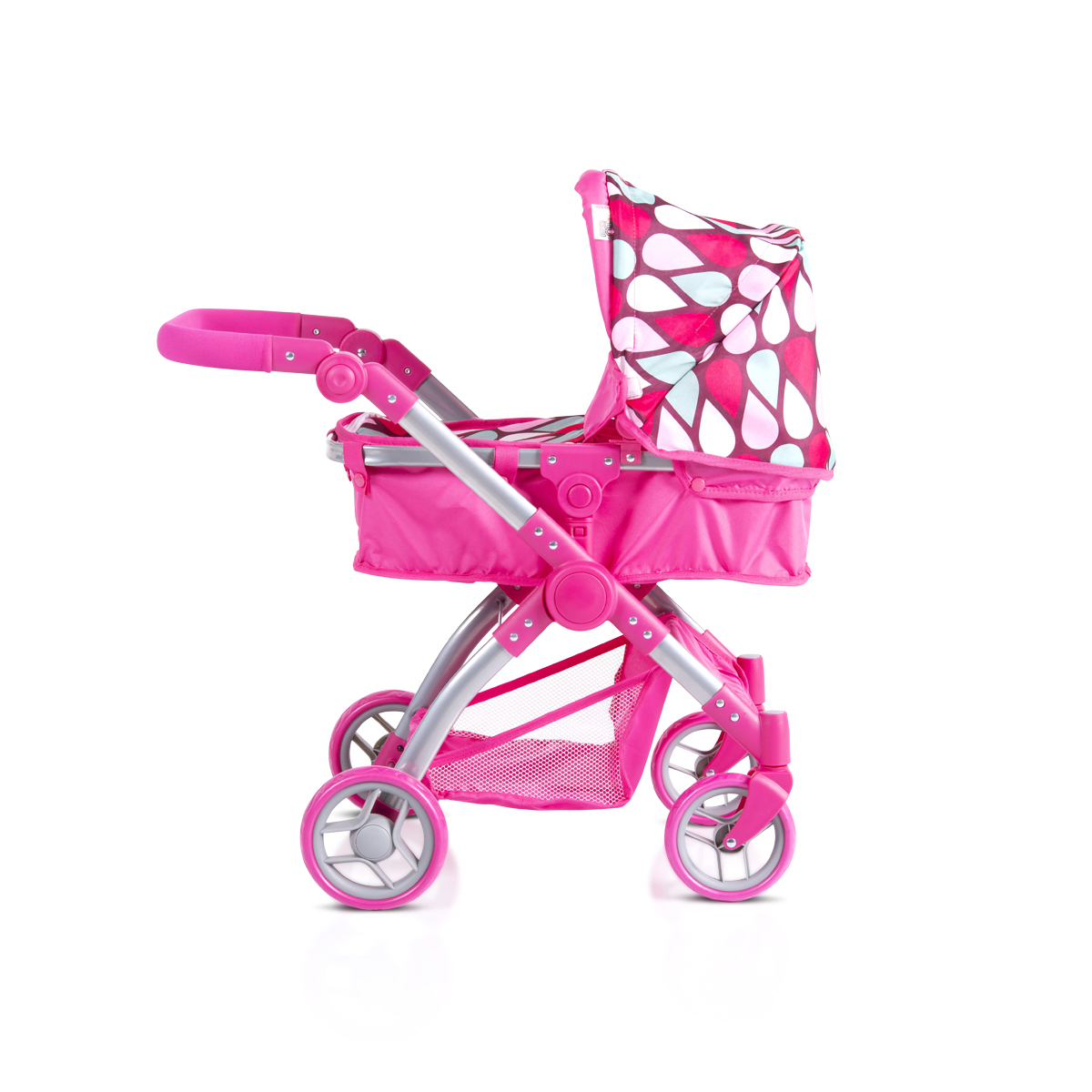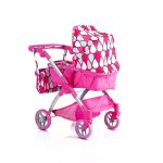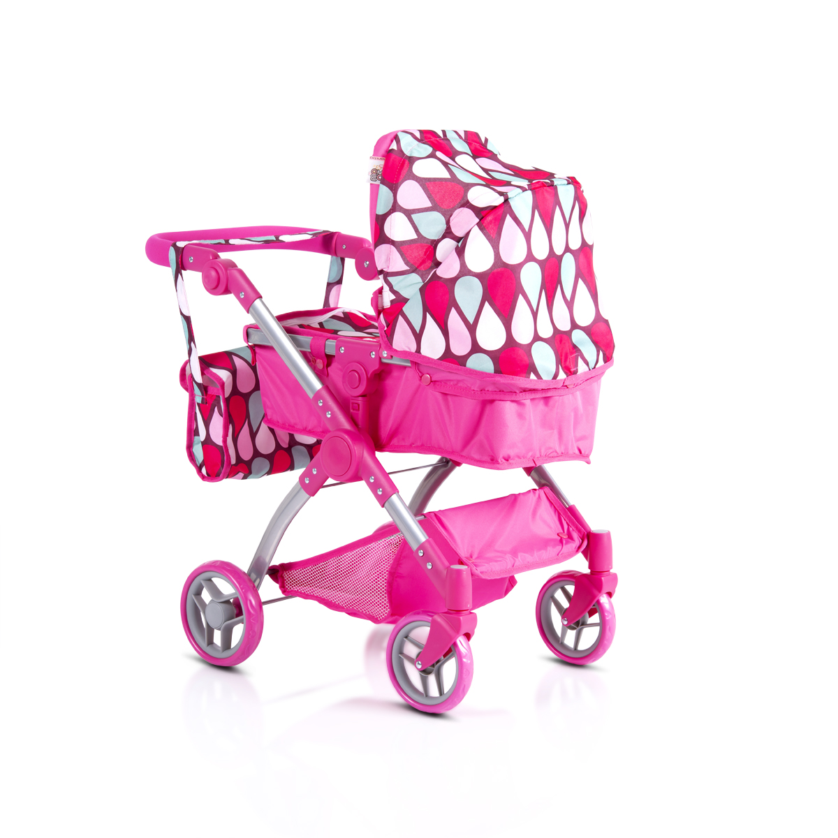 Suitable for children over 3 years. Doll pram with transforming cot. Height adjustable handle bar. Reversable seat unit. The bag for accessories is included in the set.