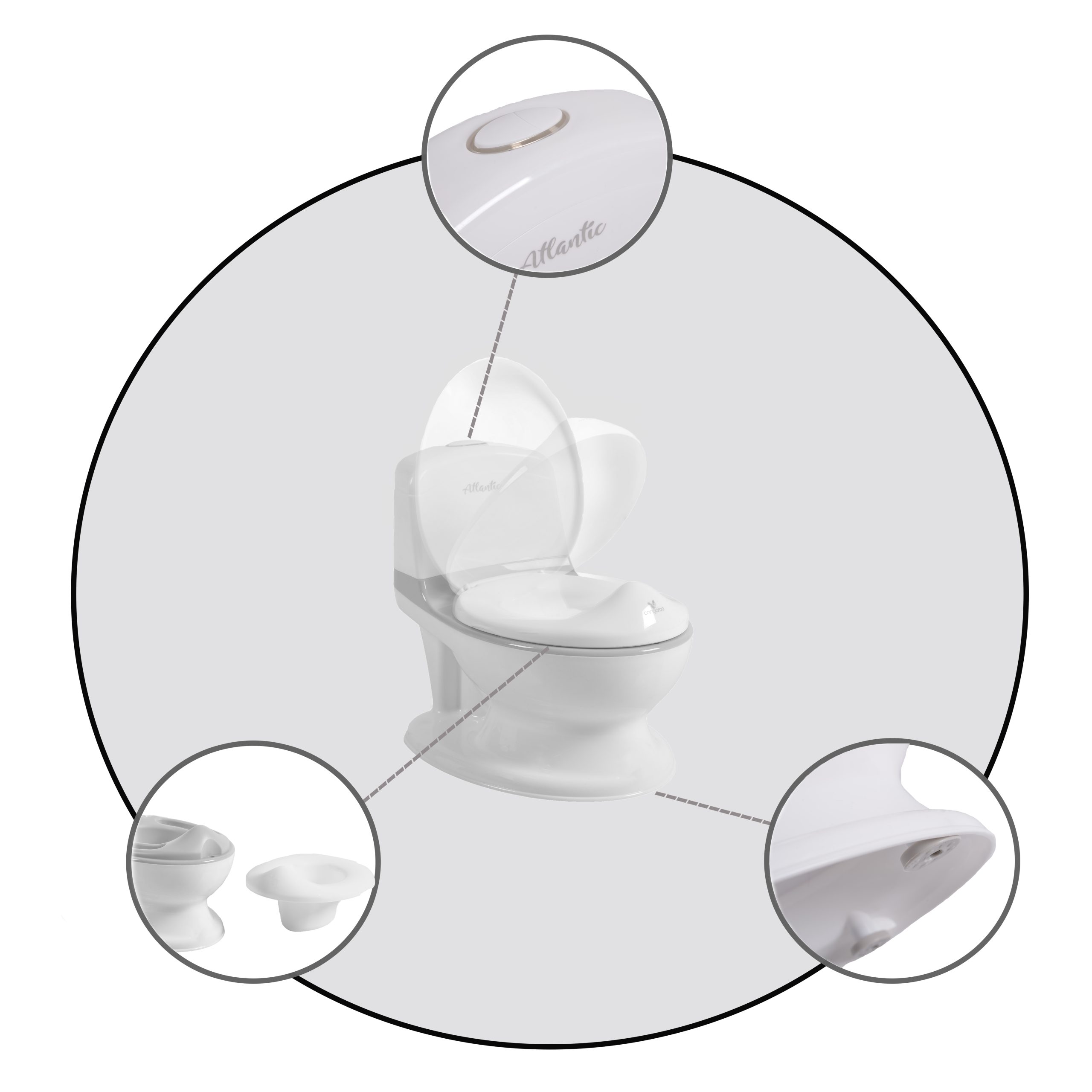 The educational potty “Atlantic“ pot is suitable for children from the age from 1 years old and with a maximum weight up to 30 kg. The design reminds a real toilet for adults to help the child get used to the transition from potty to toilet. The pot also has a sound effect “running water“. Have fun with your child`s first invaluable lessons. It has a removable container for easier cleaning and a storage compartment for paper or wet wipes. Made of high quality materials.