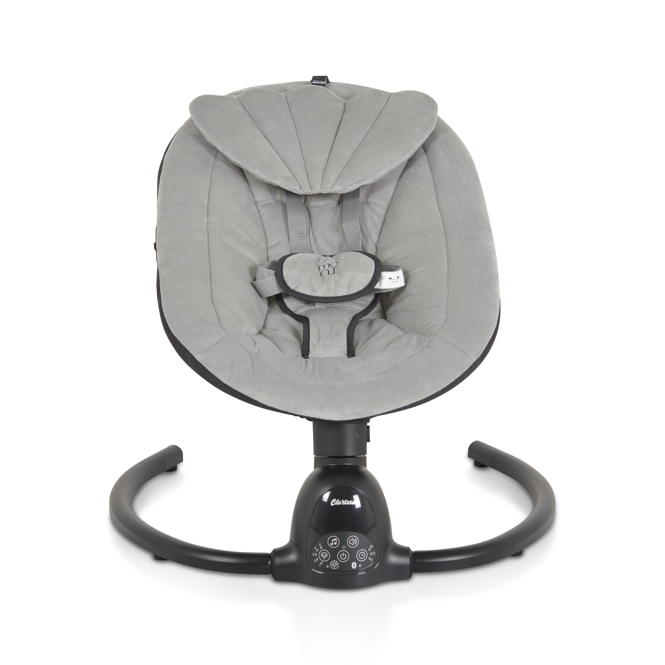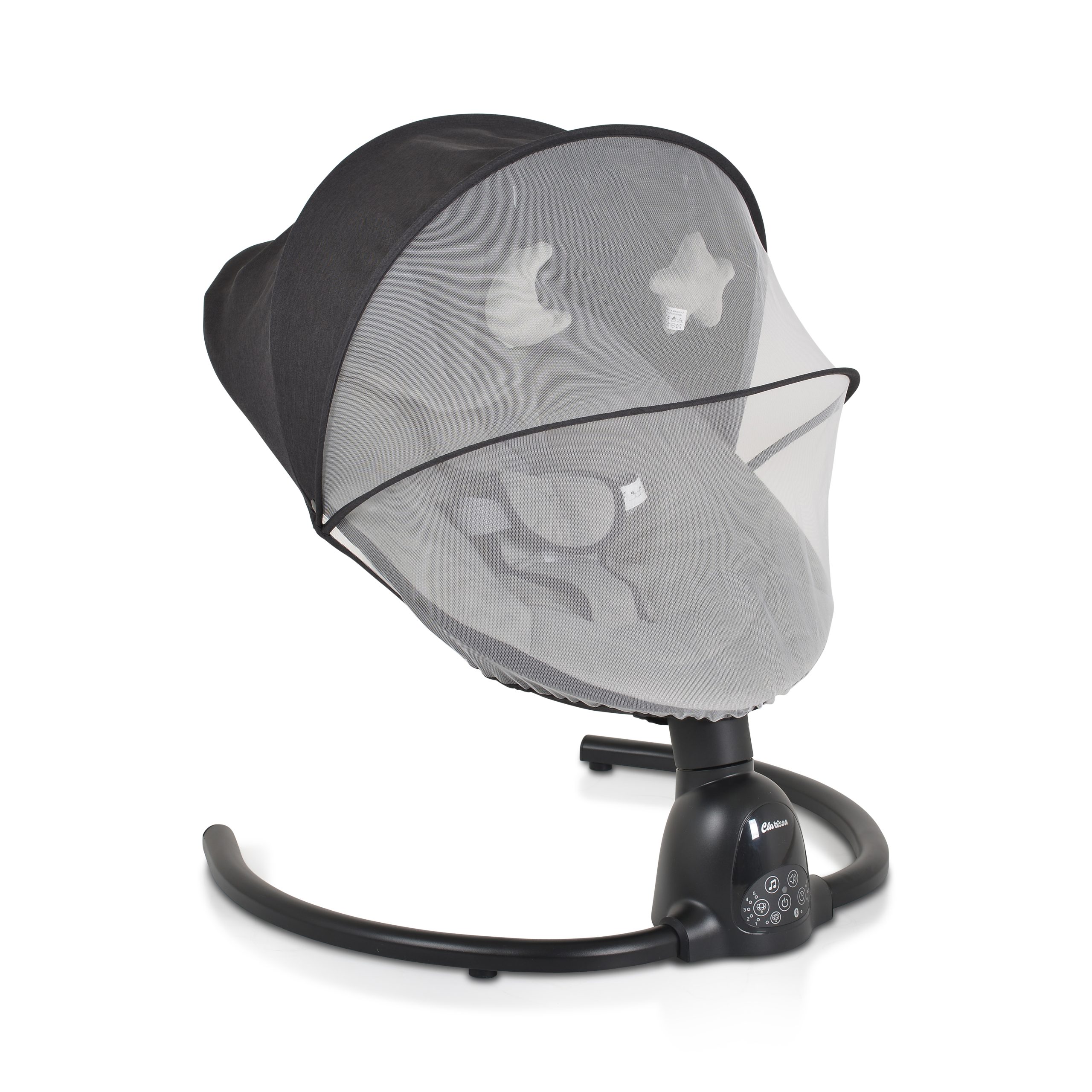 The baby swing Clarissa has a stylish and clean design, suitable for any interior. There are 5 swing speeds to choose from. The swing has a built-in motion detector that can automatically activate the swing when the child moves. Using the Bluetooth function, you can play music of your choice in case you don`t want to take advantage of the available 10 melodies. The swing only works with an adapter with a cable length of 5m (included in the set). It can be controlled with the touch panel of the mechanism or with a remote control. Optionally, you can use the timer with an option of 8, 15 and 30 minutes. By selecting any of these options, the swing stops swinging after the specified time interval. The 5-point seat belt will ensure the safety of the child. The product features canopy with mosquito net and 2 plush toys. For the baby`s comfort, the set also includes a soft pillow. The upholstery can be easily removed for washing. The item can be disassembled quickly and easily by an adult with one movement. In addition, its extremely light construction makes it convenient to carry to another room or on the road.