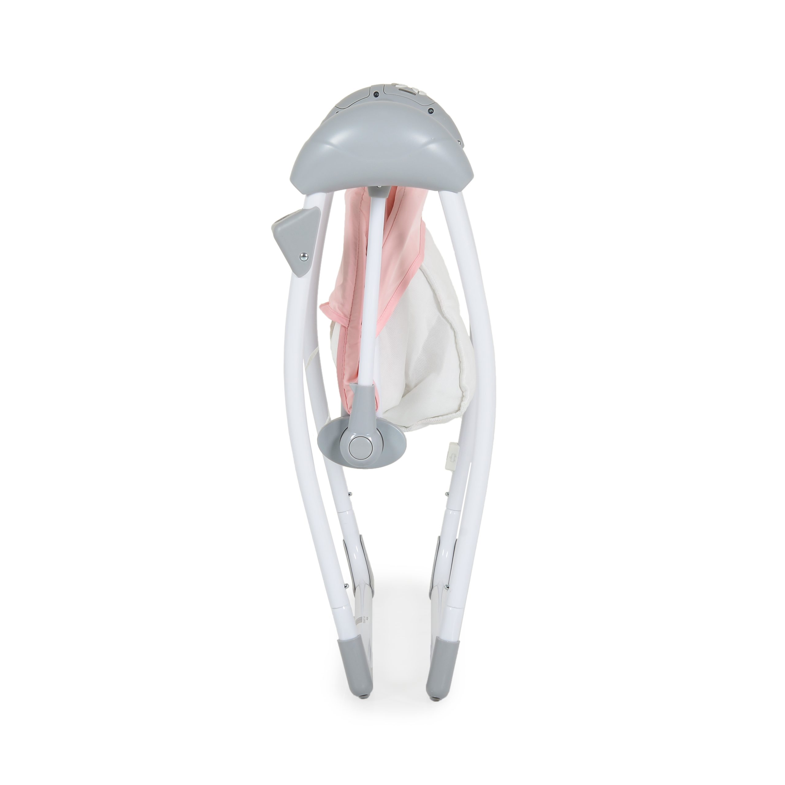 Suitable for children up to 6 months and with weight up to 9 kg; 5-swinging levels – marked with lighting indicators; 3 swinging time settings – 8, 15 and 30 minutes; 12 pure melodies and 5 nature sounds. The seat has 2 positions – lying for rest and half-standing for play. The set includes electric toybar with 3 toys for visual stimulation of the baby and remote control; The children swing works with adapter or batteries.