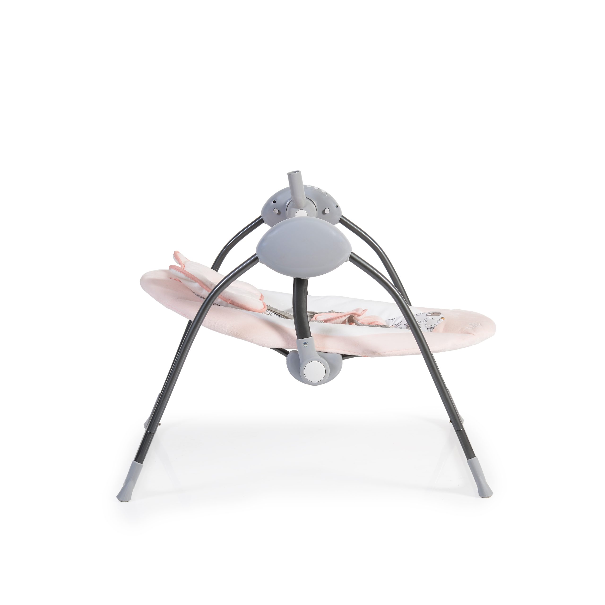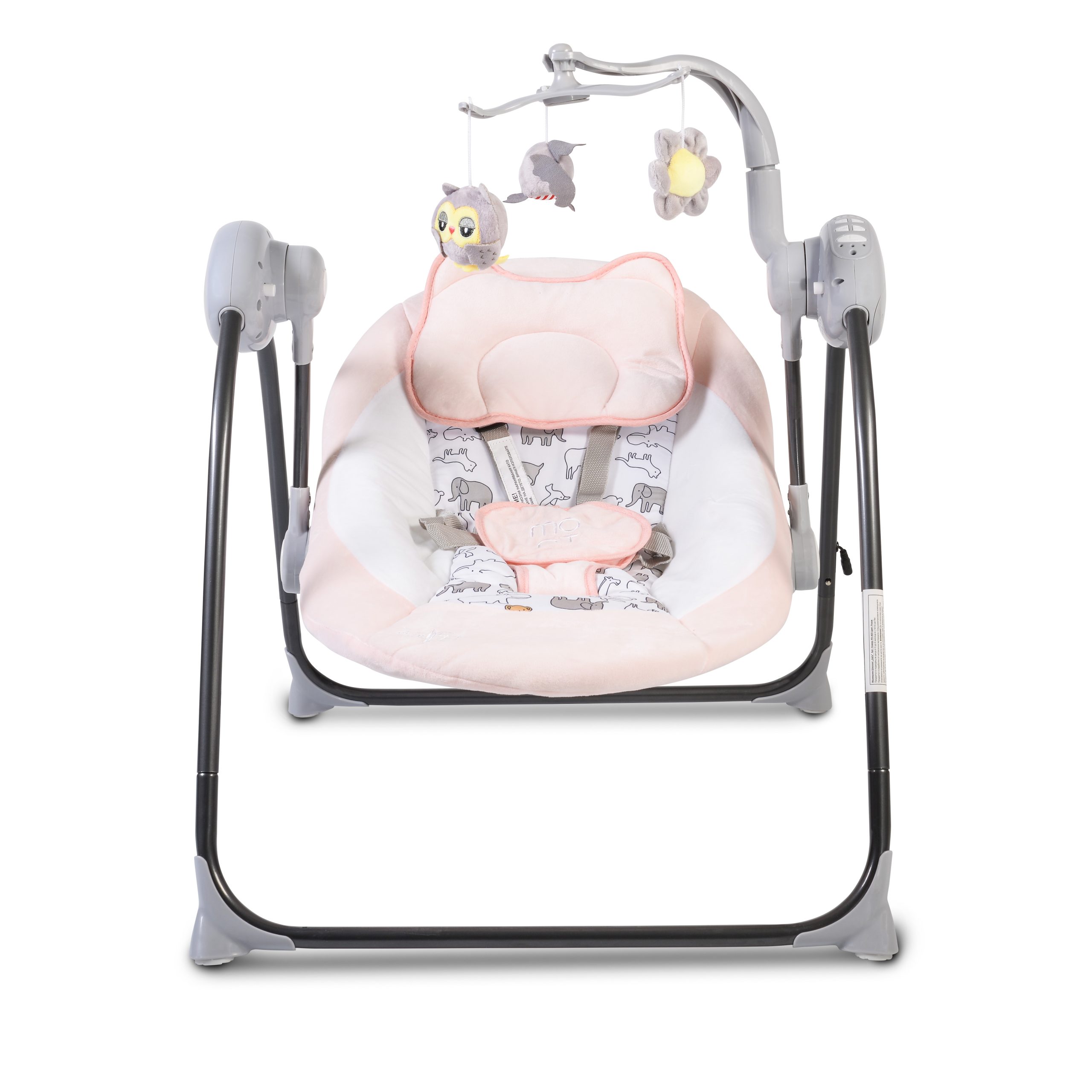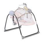 Suitable for children aged approximately up to 6 months and maximum weight up to 9 kg. Has 5 levels of swinging, 3 adjustments of swinging time – 8, 15 and 30 minutes, 12 gentle melodies and 4 volume levels. The seat has two positions of the backrest- lying for rest and half-standing for play. Works with adapter or 4xAA batteries. RC and toy bar with funny 3 toys (owl, fish, flower) included in the set. Easy fold for storage and travel.