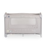 Multi-function: folding bed and playpen. Second floor with zipper. Changing mat. Toy bar with 3 plush toys. Comfort mattress. 2 net sides. Anti-slip feet for perfect stability. Side entrance with zip. Carry bag included in the set.