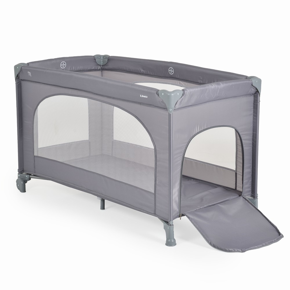 The folding cot Uno is a simple and stylish model. It provides security for naptime or playtime. There is a removable mattress with thickness 1.5 cm included. 3 of the sides are mesh lined for visibility and ventilation. There is a zipper entrance and 2 wheels for easy movement. The cot could be easily folded to a compact size and packed in the included bag for travelling or storage.