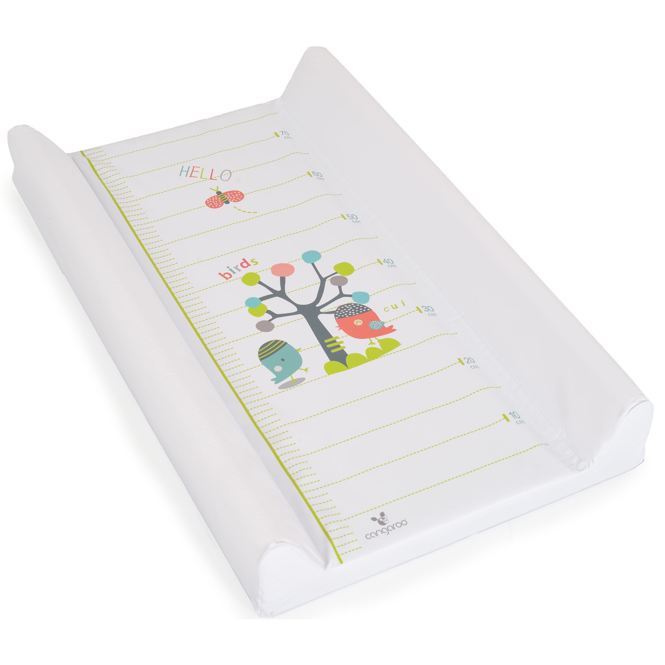 Suitable for all kind of cots, baby beds and cabinets, thanks to its rigid basis. Made from PVC material for easy cleaning, padded with foam and hard layer. Cantimeters shown on the changing mat for easier following of the growth of the child.