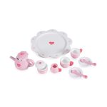 A 12-piece set, includes everything needed for a children`s party – a tea pot, a milk jug, a sugar bowl, serving tray, two cups with saucers, and spoons. Suitable for children over 3 years old, designed with rounded edges for maximum safety and comfort during play. Features a realistic and fun design. Made from high-quality natural wood. The set encourages creativity and social skills, turning every playtime into an unforgettable experience!