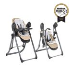 The multifunctional Nirvana 2in1 model easily transforms from a baby swing into a high chair. It can be used as a high chair for children who can sit independently, aged over 6 months and weighing up to 15 kg. In its baby swing function, the product is suitable for newborns from 0 months and weighing up to 9 kg. The child will feel extremely comfortable thanks to the wide seat made of high-quality PU leather. For added comfort, the set also includes an additional soft cushion for newborns. For maximum convenience during feeding, the chair offers 6 height adjustment levels for the seat and 3 reclining positions for the backrest. The adjustable footrest can be set in 3 positions. The removable tray with a cup holder is adjustable in two positions and can easily be replaced with a toy bar featuring three soft toys. The chair is equipped with 4 wheels for easy movement. Your child`s safety is ensured by the 5-point safety harness. The harness can be adjusted to two height levels at the shoulders according to the child’s growth. The chair folds very easily into a compact size and can be stored anywhere at home. In its swing mode, the product offers 5 swinging speeds and a timer with 3 settings, while the intelligent motion sensor activates swinging when it detects that your baby needs soothing. The musical function includes 12 melodies, 5 nature sounds, and adjustable volume control. The product operates with an AC-DC adapter (included) or 4xAA/LR6 batteries (not included). The set also includes a remote control.