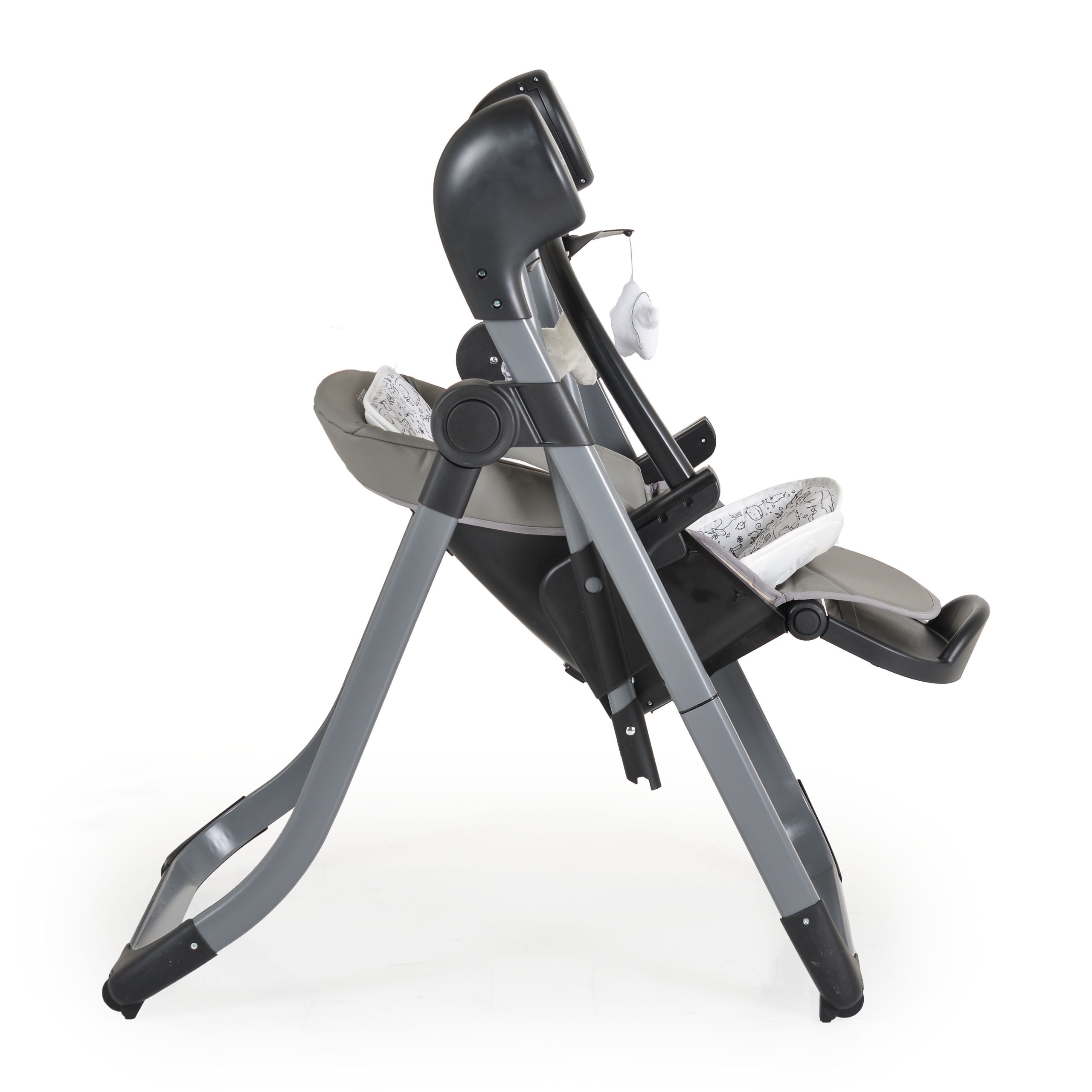 The multifunctional Nirvana 2in1 model easily transforms from a baby swing into a high chair. It can be used as a high chair for children who can sit independently, aged over 6 months and weighing up to 15 kg. In its baby swing function, the product is suitable for newborns from 0 months and weighing up to 9 kg. The child will feel extremely comfortable thanks to the wide seat made of high-quality PU leather. For added comfort, the set also includes an additional soft cushion for newborns. For maximum convenience during feeding, the chair offers 6 height adjustment levels for the seat and 3 reclining positions for the backrest. The adjustable footrest can be set in 3 positions. The removable tray with a cup holder is adjustable in two positions and can easily be replaced with a toy bar featuring three soft toys. The chair is equipped with 4 wheels for easy movement. Your child`s safety is ensured by the 5-point safety harness. The harness can be adjusted to two height levels at the shoulders according to the child’s growth. The chair folds very easily into a compact size and can be stored anywhere at home. In its swing mode, the product offers 5 swinging speeds and a timer with 3 settings, while the intelligent motion sensor activates swinging when it detects that your baby needs soothing. The musical function includes 12 melodies, 5 nature sounds, and adjustable volume control. The product operates with an AC-DC adapter (included) or 4xAA/LR6 batteries (not included). The set also includes a remote control.
