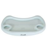 The high chair Noodle is extremely easy for folding and unfolding. It takes no more than 3 seconds to do it. The folded position is with compact size. The feeding tray is removable and it has 2 cup holders. The upholstery is made of PVC material, which is very easy for cleaning. The chair has 5-point restraint system.