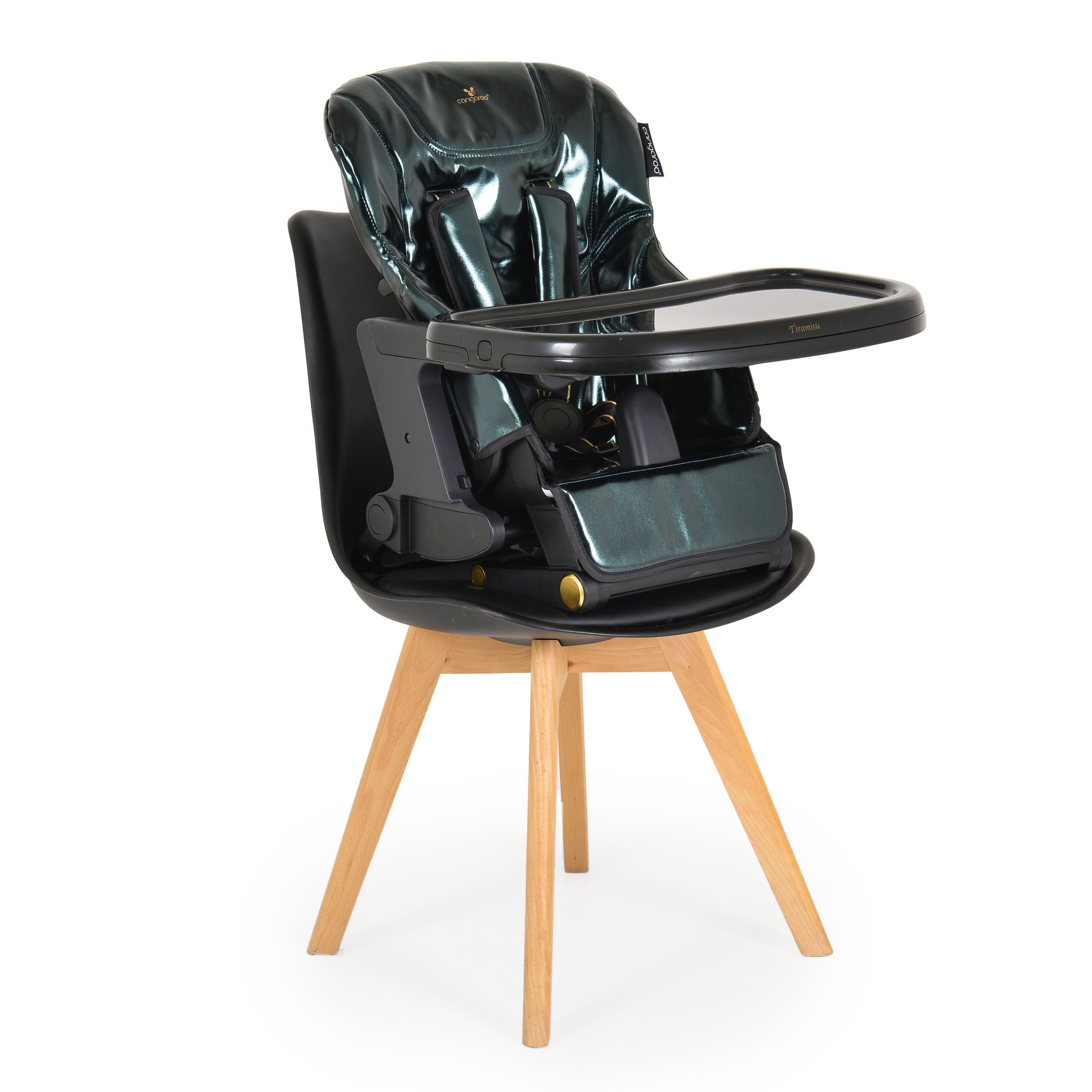 High chair Tiramisu is convertible into a booster seat by detaching the seat. There is a 7 height levels, 5 positions of the backrest, 3 positions of the double feeding tray, 3 positions of the height and angle of the footrest. The upholstery is made of PU leather. There are shoulder pads for maximum comfort and 5-point restraint system for the security of the child.