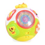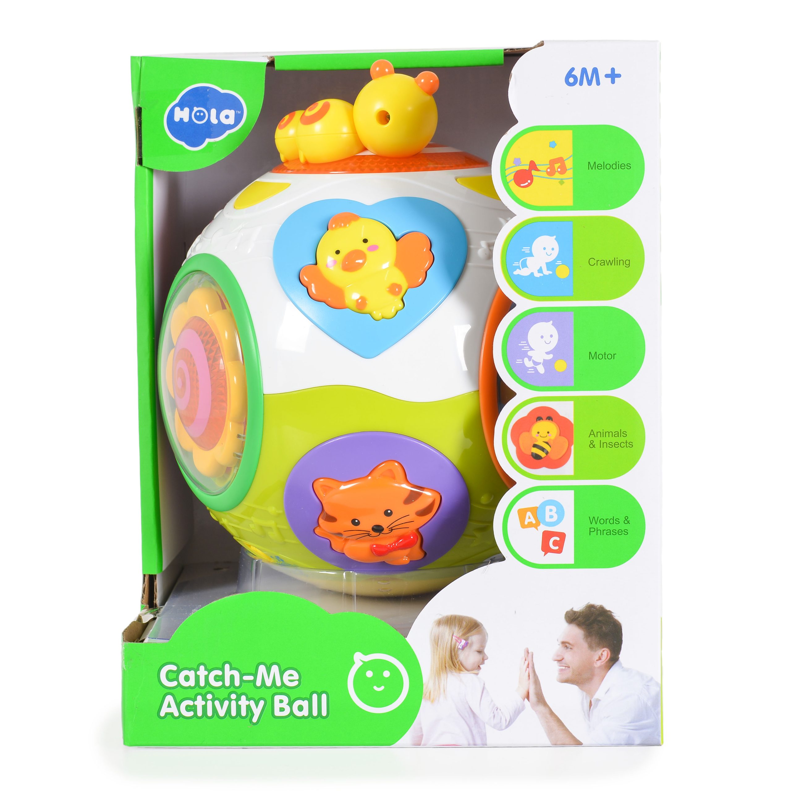 A fun and colorful interactive ball that has many variations of the game. It rotates 360 degrees, has many buttons and rotating elements. There are colorful animal and insect buttons that make fun sounds, words and phrases. It has a spinning bead and flashing lights. The toy is designed to make the baby like to fill or go after it, as well as to repeat the sounds and phrases that the ball makes.