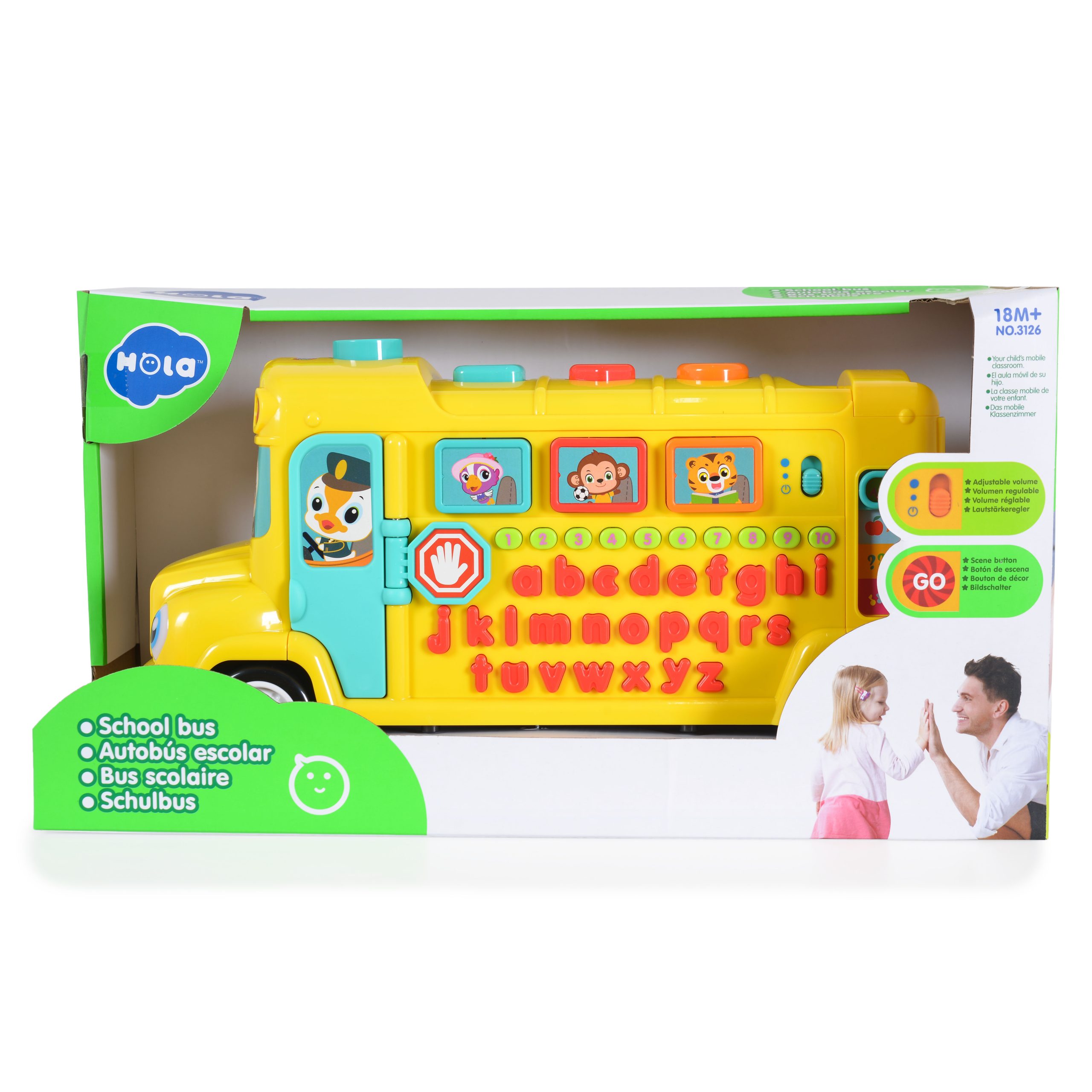 The educational toy “School Bus“ with sound and light effects will not let your child get bored. It will introduce him to the world of animals, teach him to distinguish emotions. It can move independently around obstacles. With a toy bus, you can learn the English alphabet, some words, numbers up to 10. The educational toy has 4 modes: numbers and letters, words, questions and answers, music. By pressing the big button at the top, you can change the bus number and choose an image of a school, zoo or amusement park. It has 2 sound modes, sound effects and English words.
