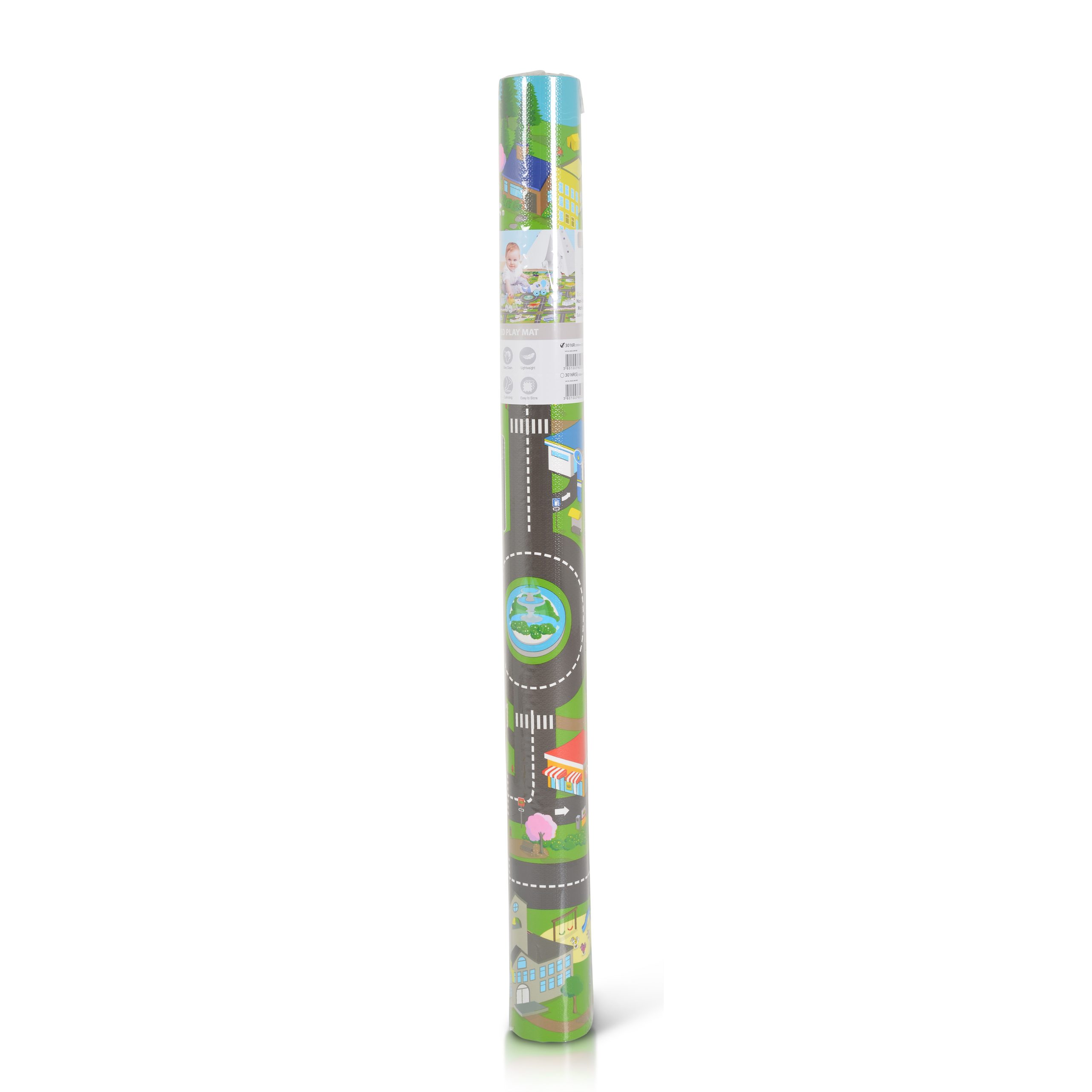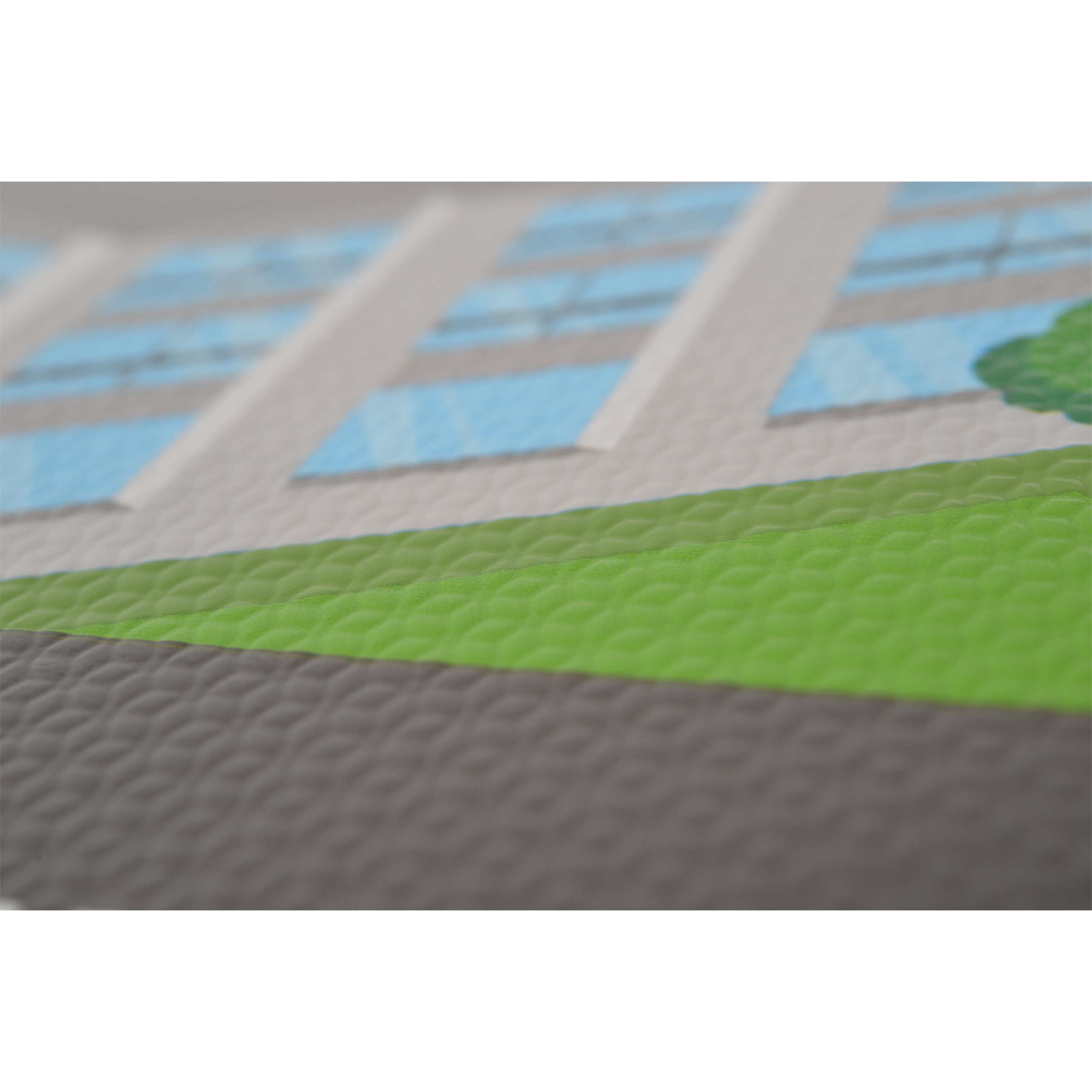 Soft play mat with dimensions 200X120 and thickness 3 cm. The mat is made of EVA foam and is very soft, perfect for playing. It has a non-slip coating and is easy to clean. The print is of a city and can be used for playing with carts. Through play, children develop their motor skills, imagination and creativity.