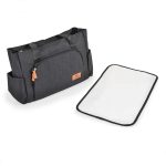 Multifunctional mama bag Keily – Main compartment with a zipper. The main compartment includes: – One big pocket; – 3 additional small pockets for baby bottles; – 2 additional small pockets; – Big front pocket with a zipper closure; – 2 side pockets for baby bottles; – Two short handles convert from shoulder bag to stroller bag. The set includes – Comfortable baby changing mat.