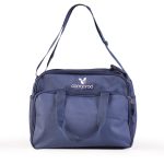 Main compartment with zipper, outer – front and side, and inner pockets for accessories. With adjustable handle – suitable for carrying over the shoulder or placing the handle of the stroller; and two smaller ones for attaching the bag to the handle of a stroller. Soft changing mat included in the set. Available in dark blue and khaki.