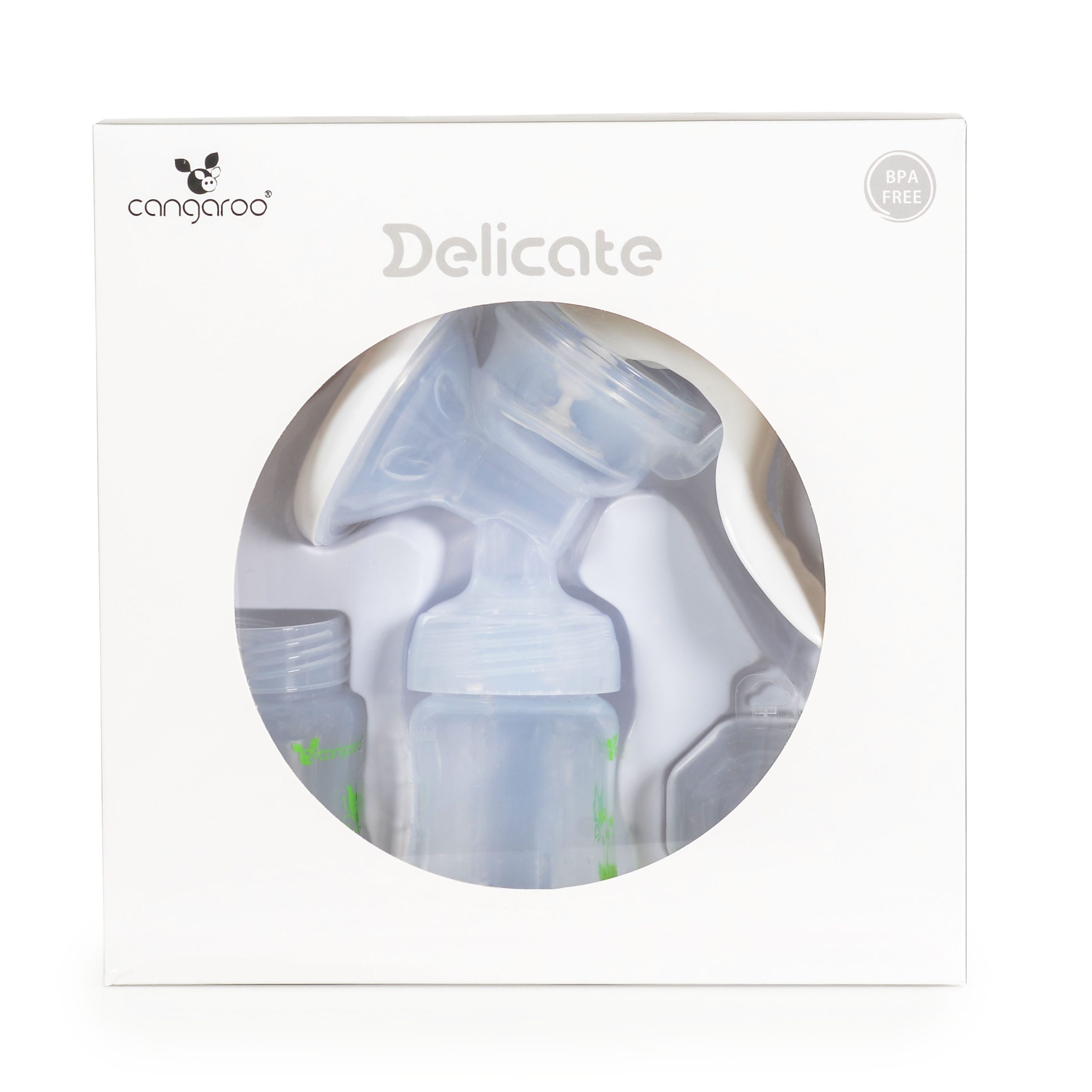Soft silicone massage pad, providing the same comfort as if You breastfeed Your baby; Easy to clean and assemble; Light and effortless to carry; With comfortable grip handle; Content: Polypropylene and silicone; BPA – free. In the set are included the following accessories: Manual breast pump: 1 pc; Additional milk bottle (120ml/ 4oz): 1 pc; Stand for the bottle/ protector for the silicone pad: 1 pc; Nipple for newborn 0+: 1 pc; Box for the nipple: 1 pc.