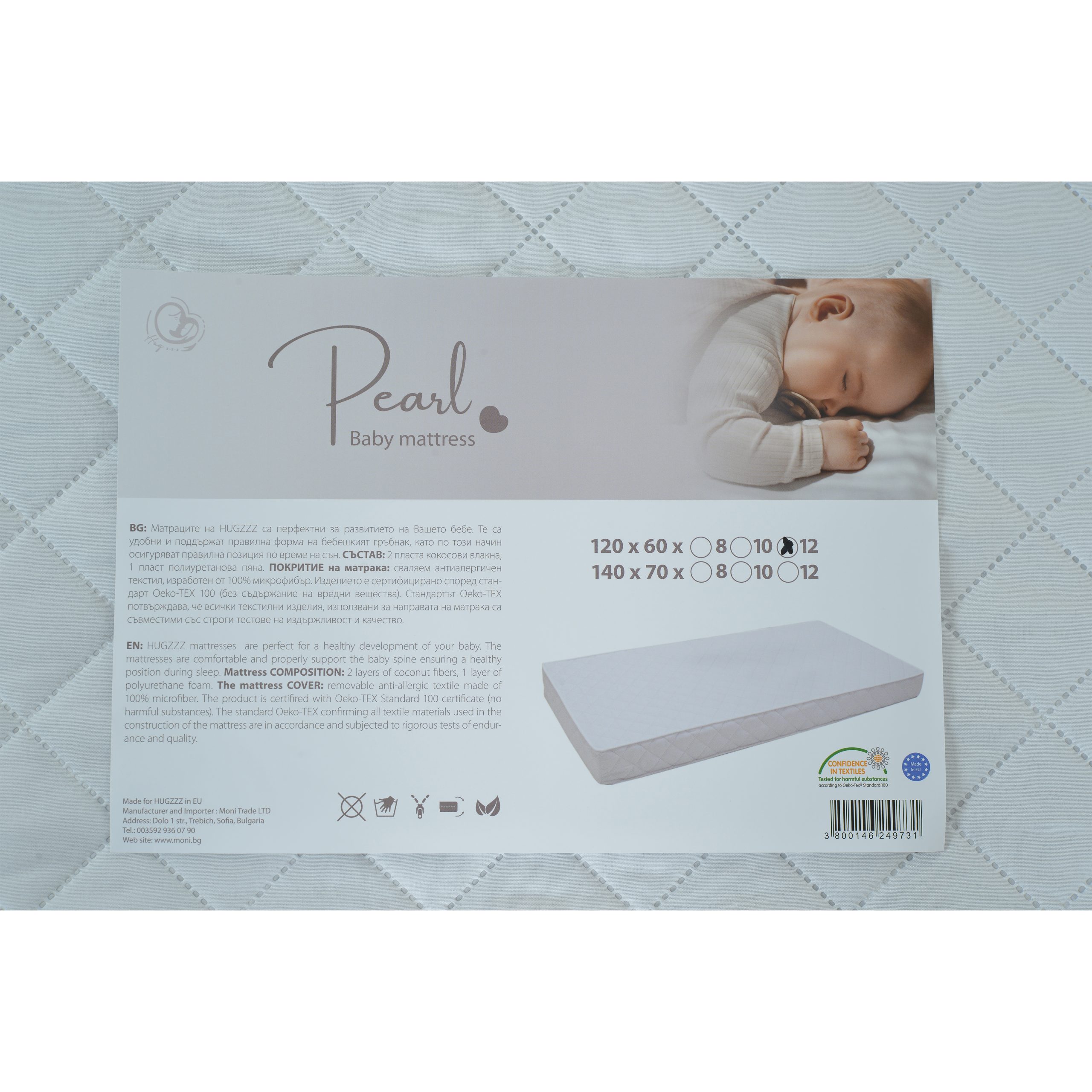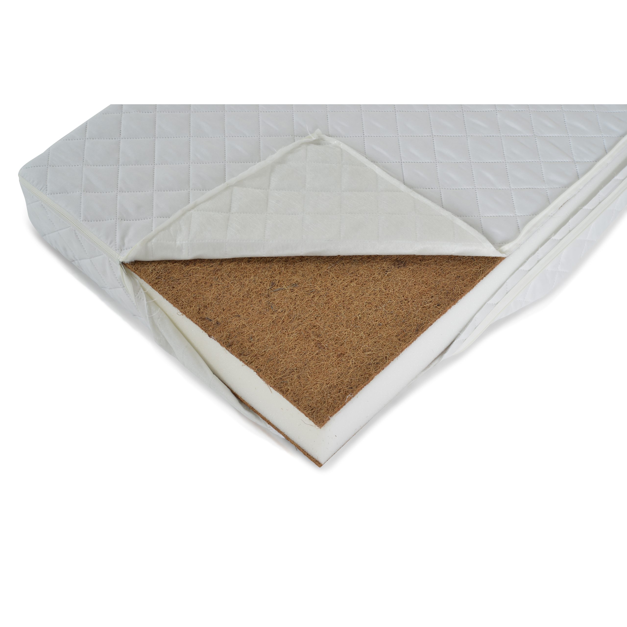 Composition: 2 layers of coconut fibers and 1 layer of polyurethane foam; The mattress cover: removable anti-allergic textile made of 100% microfiber; Size: 120 x 60 x 12 cm; Made in EU