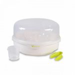 Holds up to 5 bottles and accessories; Suitable for bottle up to 15.5 cm high; Teat/ bottle tong included; Quick sterilization – maximum up to 8 minutes; Suitable for any microwave rated power 750W or over; Compact and lightweight – Ideal for travel; Dishwasher safe; Size: Diameter – approx. 28cm; Height – approx. 18cm