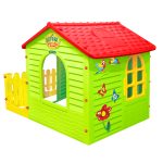 Fun children`s house Mochtoys. The house has opening windows, a door and a fence, which provides additional space for play. The colorful colors of the house contribute to the development of color perception from an early age. Made of paints and materials safe for your child`s health.