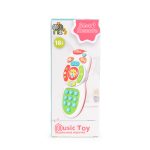 The product is intended for use by children above 18 months of age. The toy has: various buttons, volume control button, flashing lights, fun sound effects, on/ off button. Batteries needed: 3 x 1.5V AAA.