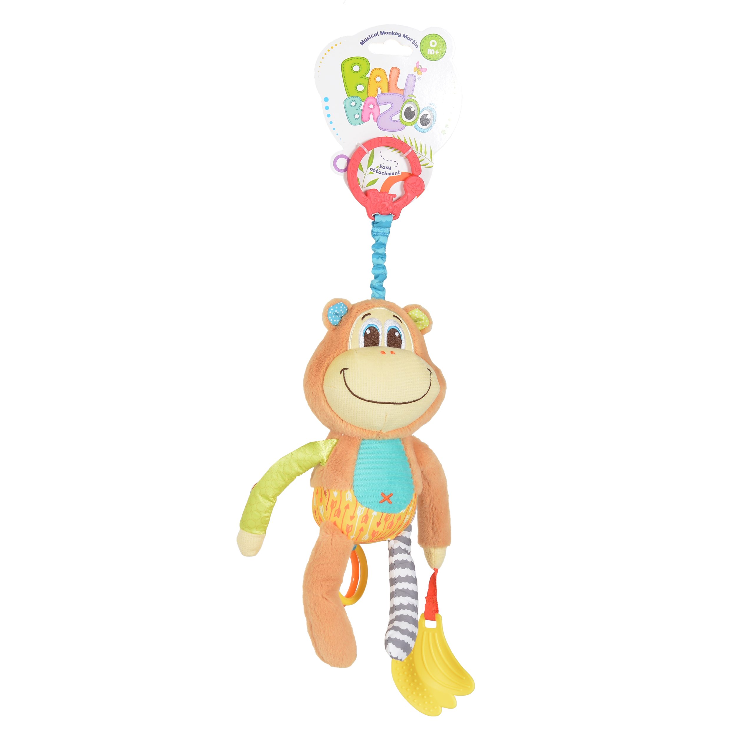 35 cm pendant Monkey. Made of different textures and rustling elements. Built-in bell, rubber parts for chewing and music box.