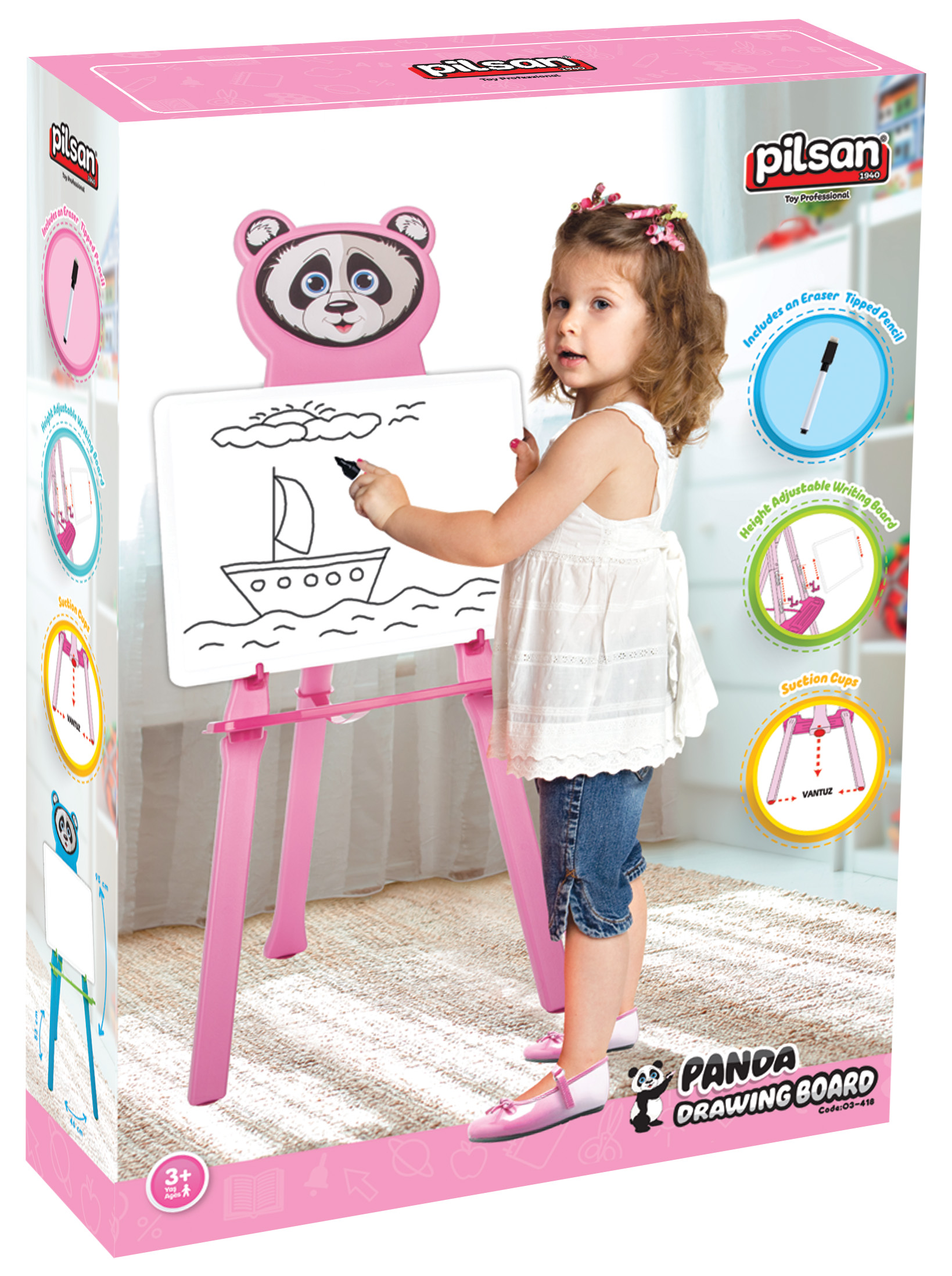 Educational children board PANDA Pilsan. Height 95 cm. The set includes sponge and a marker. Easy to assemble and convenient to store. Suitable for children above the age of 3. Made of harmless for the child materials and paint.