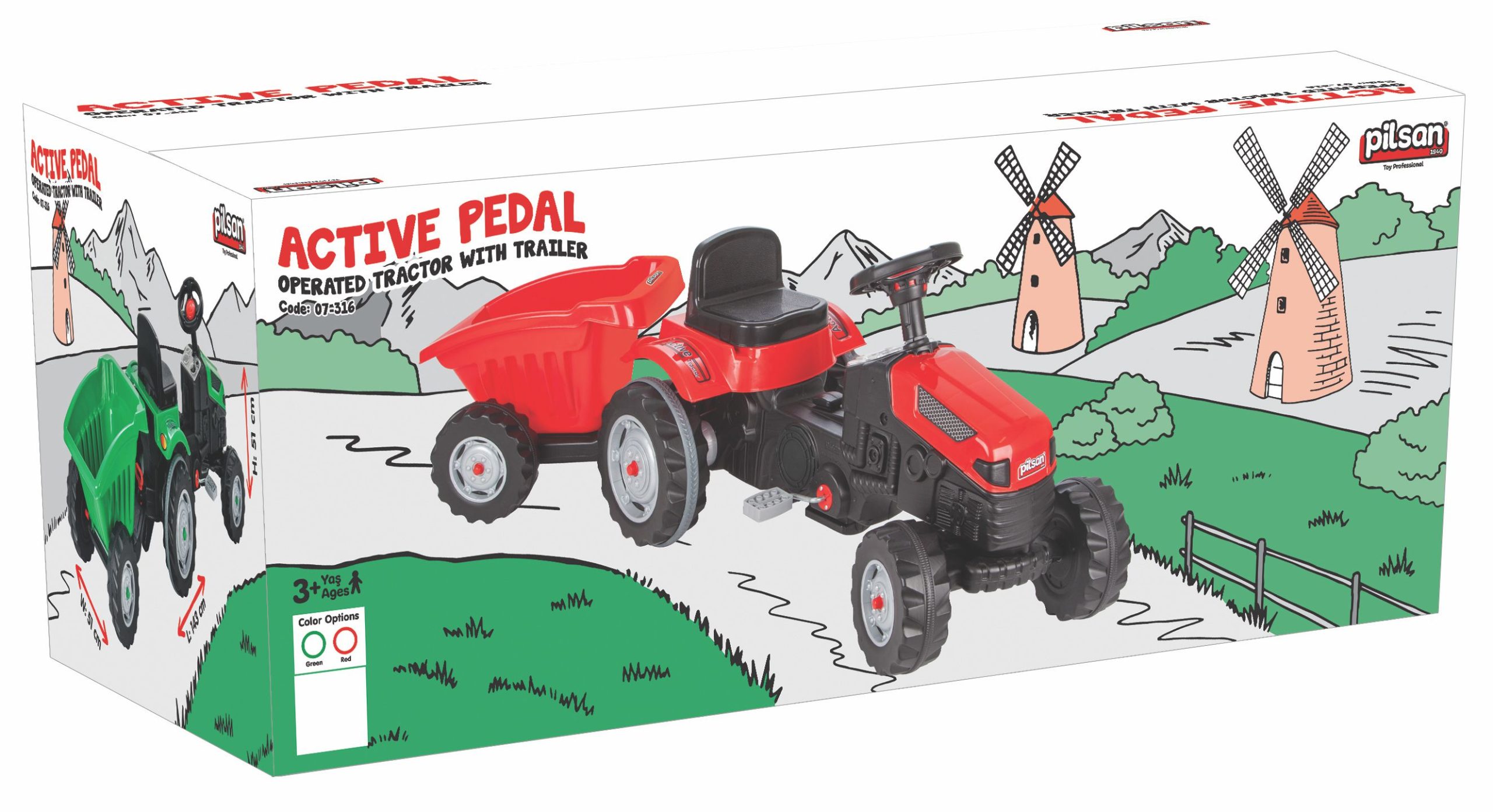 Pilsan 07316 Tractor with pedals and trailer green