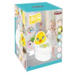 Maximum load capacity 25 kg. Music and light function. Five-point non-slip base. Removable container. Lid with option to open and close. Comfortable seat with ergonomic design. Toilet paper stand. Made of paints and materials safe for your child`s health.