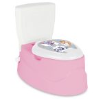 Maximum weight capacity: 25 kg. Musical function. Slip-resistant base. Removable container. Lid with opening and closing option. Comfortable seat with ergonomic design. Toilet paper holder. Made with child-safe paints and materials. Suitable for children over 18 months.
