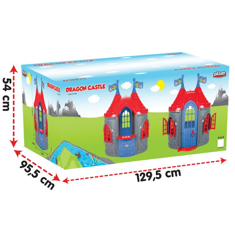 Castle for children over 3 years. Easy installation. Suitable for outdoor and indoor use. Made of safe materials.
