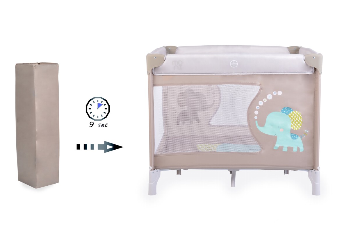 Stable playpen – 1 level. It is suitable for home and for your travels or your excursions. For children under 15 kg in weight and 86.4 cm in height. It offers a mechanism for easy, fast folding and transport. Includes mattress with thickness 1.5cm. Easy opening/folding. Perimeter net that facilitate the supervision of the child. Double safety folding system.