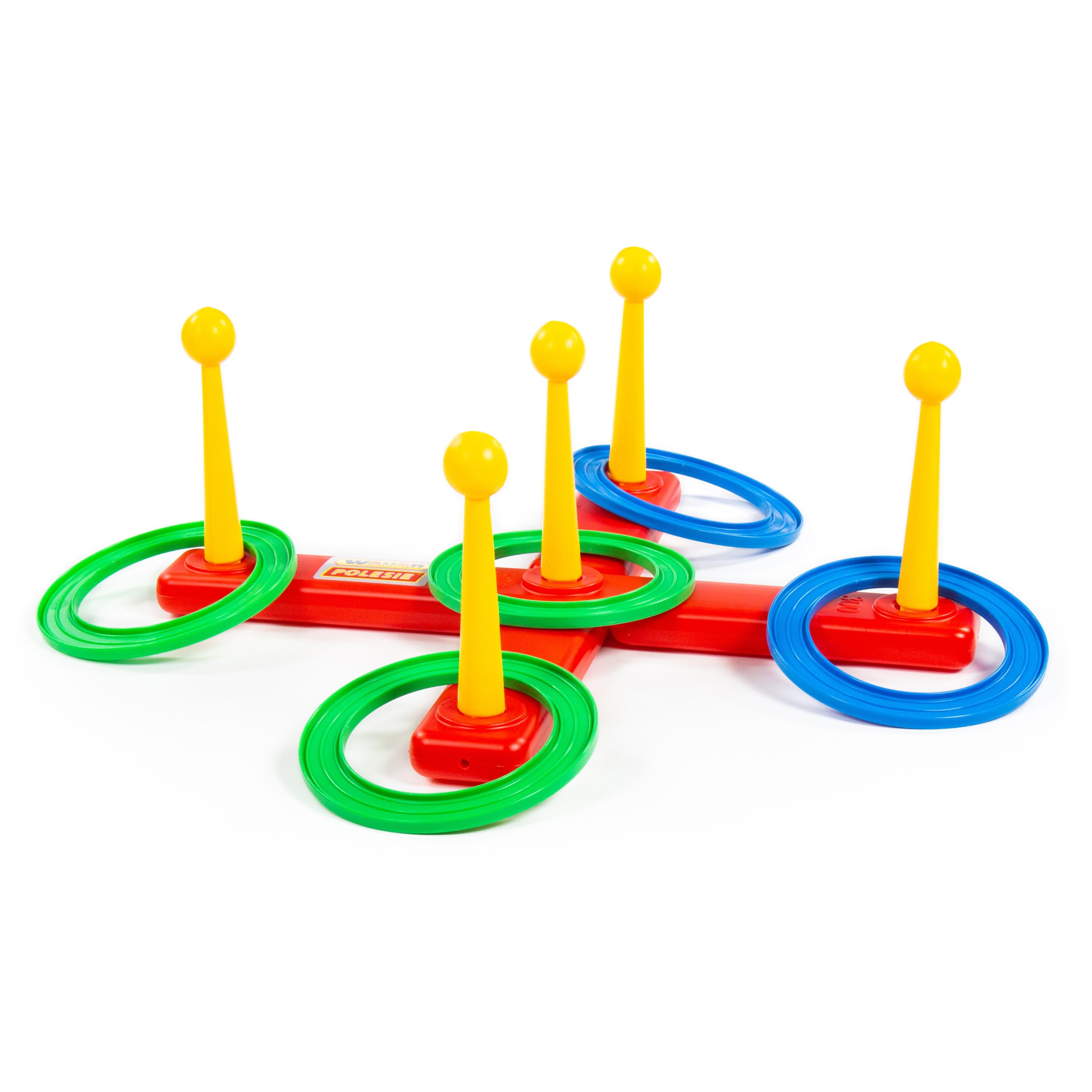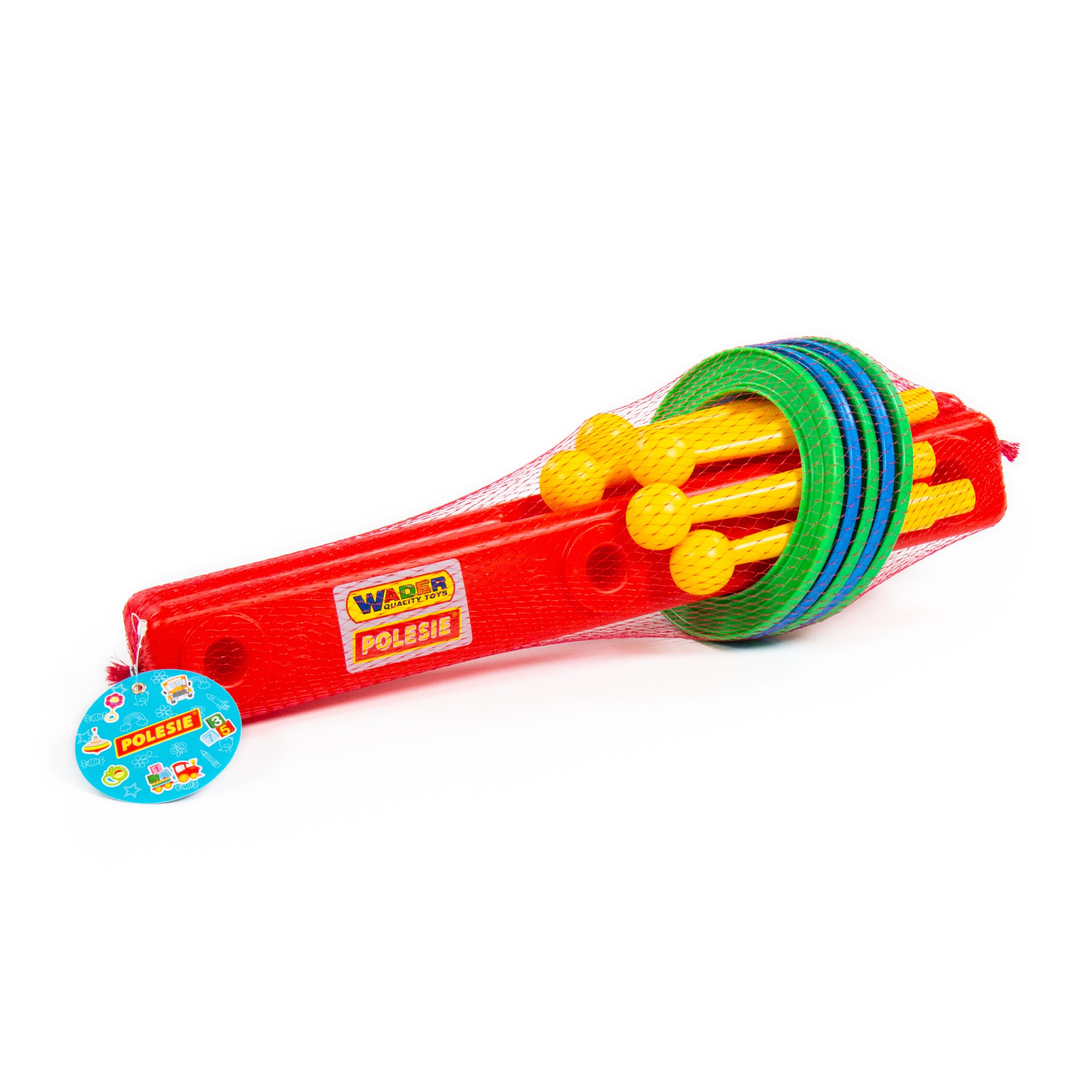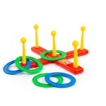 Kids love to practice their skills in aiming. They often use whatever they want. Paper tossed in the trash bin, dirty sink spoon and many more. It can be used in the yard and at home. It consists of 12 elements that are easy to fold. Its principle is to aim the rims in five properly spaced stakes. The rims must fall on them. Variations in this game can be many.