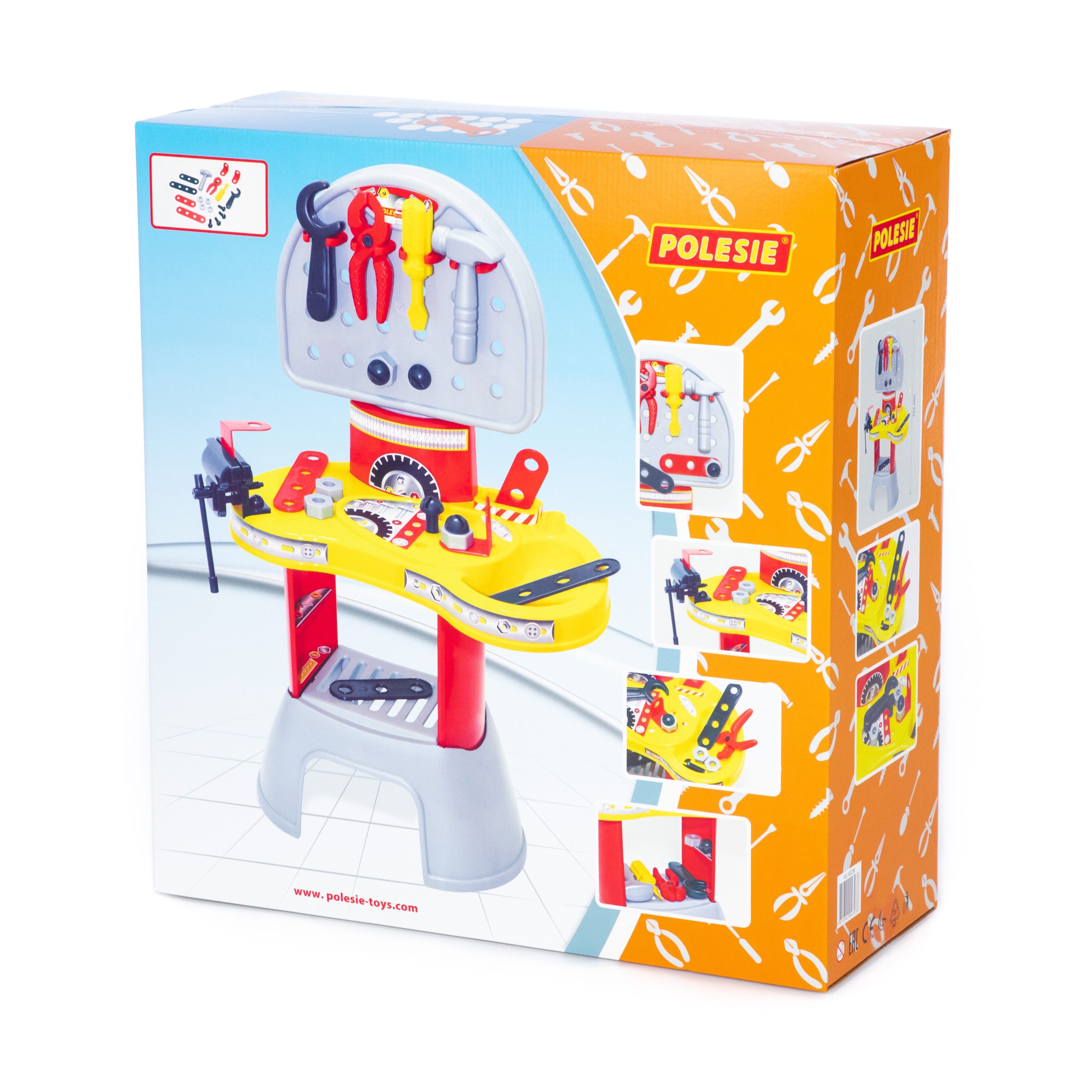 Workshop Mechanic Maxi 2 is a wonderful gift for the youngest DIY enthusiasts. Here you will find everything you need for all kinds of repairs! A special attraction are various tools that can be hung on special holders. A vice is fastened to the worktop of the workshop, which works as real! There must also be basic tools such as: a wrench, a pliers, a screwdriver or a hammer. The set also includes screws, nuts and elements that can be screwed together.