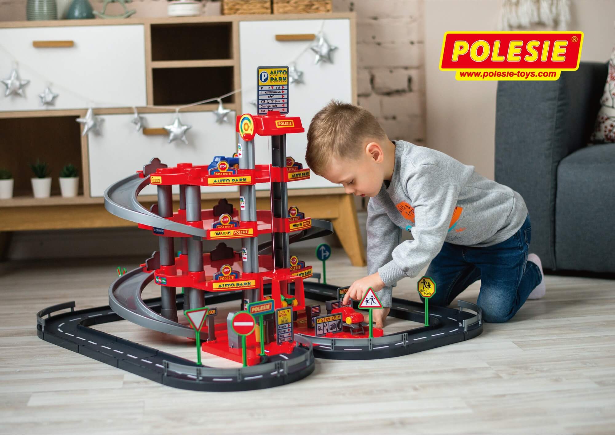 Polesie 44723 Parkgarage 4 floors with street and cars, red (box)