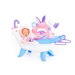 Experience the everyday fun of bath time with this adorable baby doll playset. Comes with 33 cm. realistic doll, white bathtube and tons of bathtime accessories. Children will love the fact that the doll and accessories can be in the bathtube with them. The perfect bath time baby doll every girl will love. Develop your child`s imagination with this ralistic and interactive doll playset.