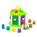 The Shape Sorter House is a take – along shape sorting playset that comes with different geometrical shapes and a set of six keys and many shape and color sorting features. Shapes are easy to grab and fit, and slide perfectly through a hole of the same shape somewhere around the house. This is a case for your toddler to solve. Suitable for children over 12 months of age.