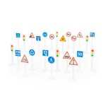 Set of road signs 24el. diversify the fun of a small toy driver. In addition, it will be a phenomenal attraction for a child who has a carpet with roads. The signs are stable and colourful. Packed in a bag