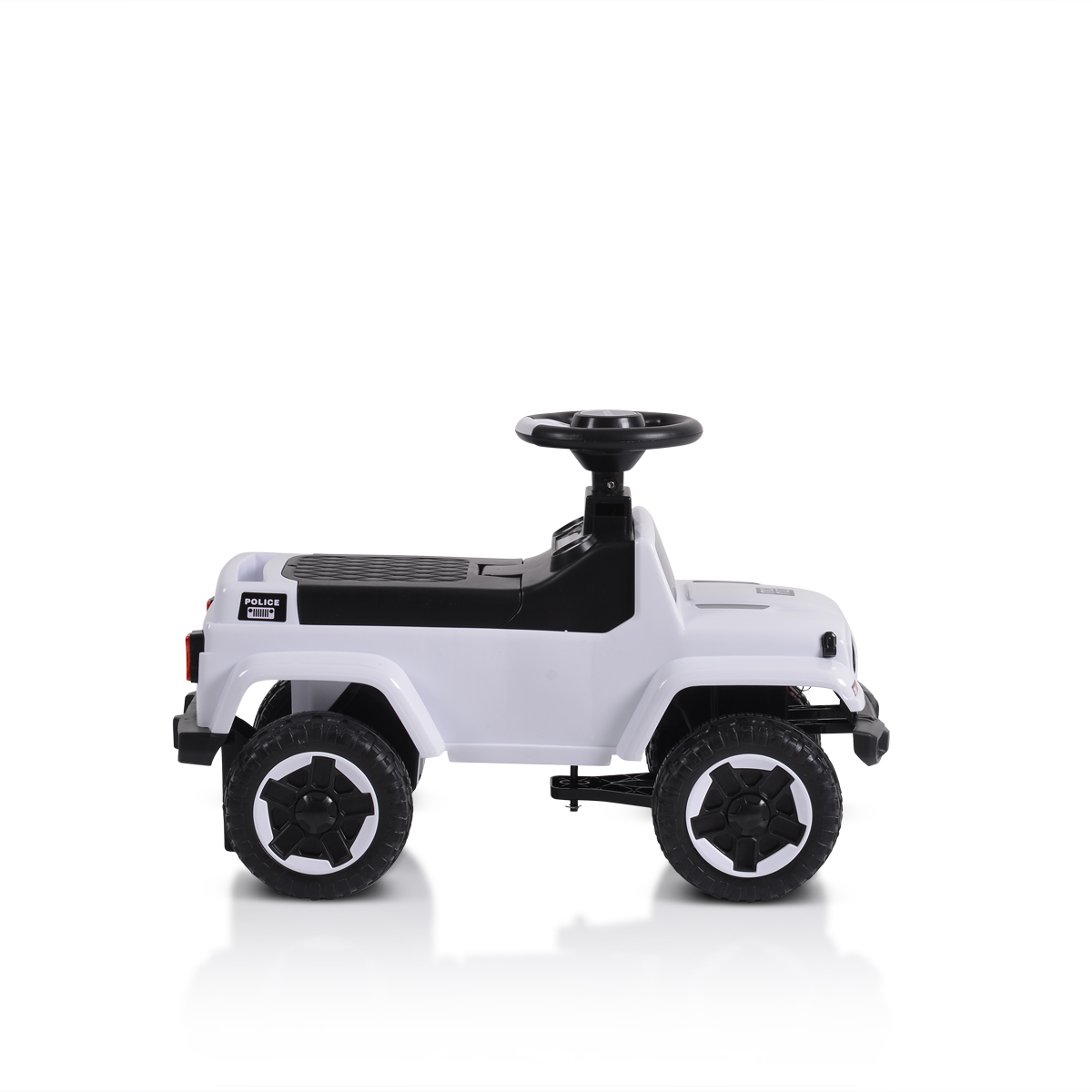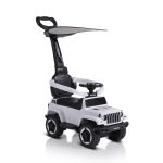 The product is intended for children aged above 24 months (2 years of age), weighing up to 23 kg. With a design, which contributes to the development of the motor skills and balance of the child. With removable parent control handle and canopy, detachable front safety board and foot rest for smaller children. Buttons for various fun melodies on the steering wheel. The music functions are activated using 3 x AA 1.5V batteries (not included).