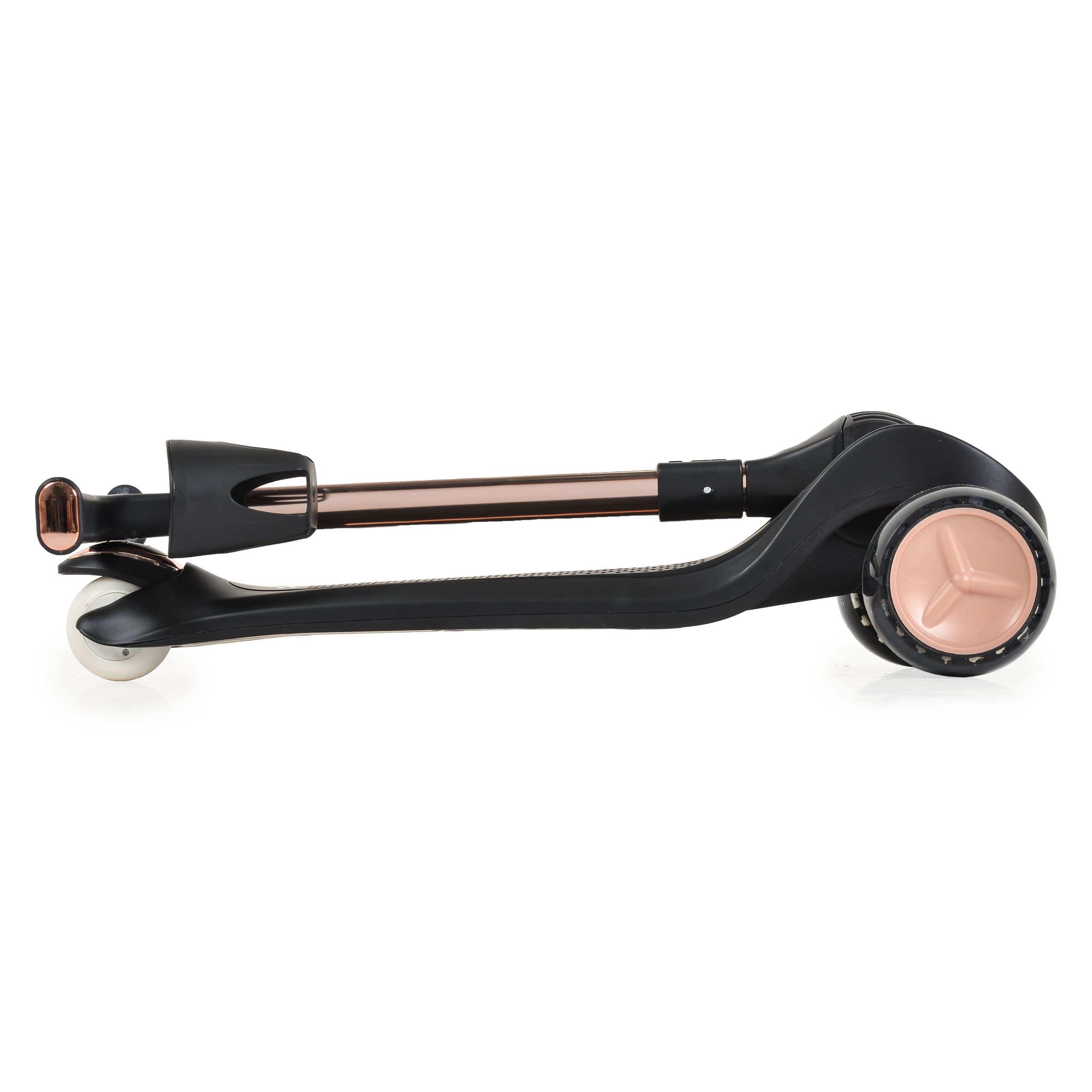 The Aero scooter is suitable for children aged 3 and up, with a maximum weight of 50 kg. It features a 5-position adjustable handlebar, foldable design for easy storage and transport, wide anti-slip deck, and ergonomic grips. Built-in lights are motion-activated with no batteries required, and the practical bottle holder adds extra convenience. Made from safe materials and certified according to European quality and safety standards.