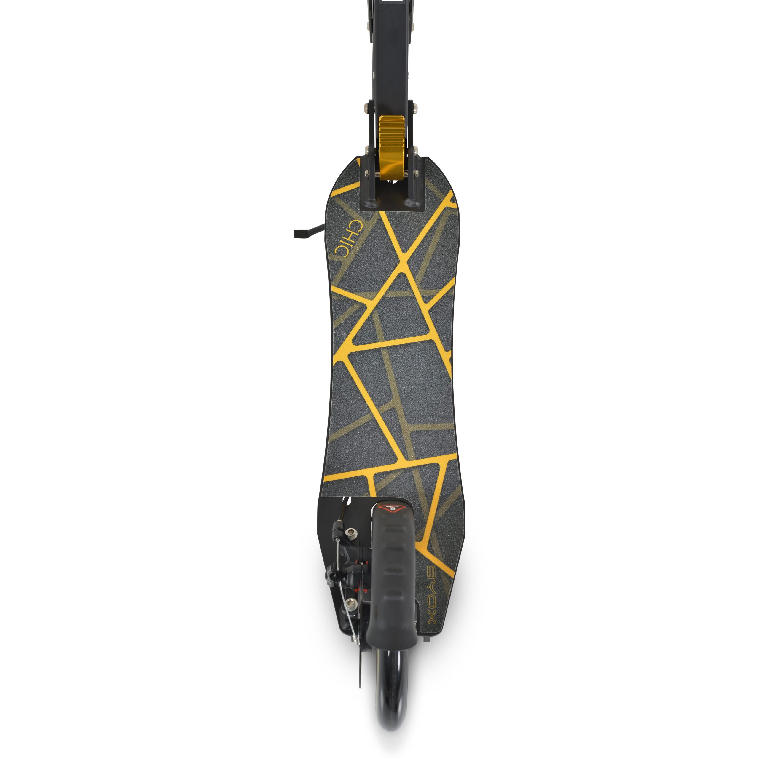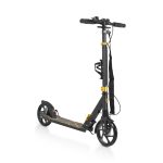 Foldable aluminium kick scooter with rear disk brake; PU wheels size 200*30 mm and ABEC-7 bearings; Front suspension; Adjustable height of the T-bar 90 up to 104 cm; NBR ergonomic grips 12 cm; Deck size 545*150 mm with anti-slip cover. The scooter is equipped with side stand; bottle holder; carry belt; bell and front LED light. Maximum permitted weight up to 100 kgs. Recommended age 8 years +