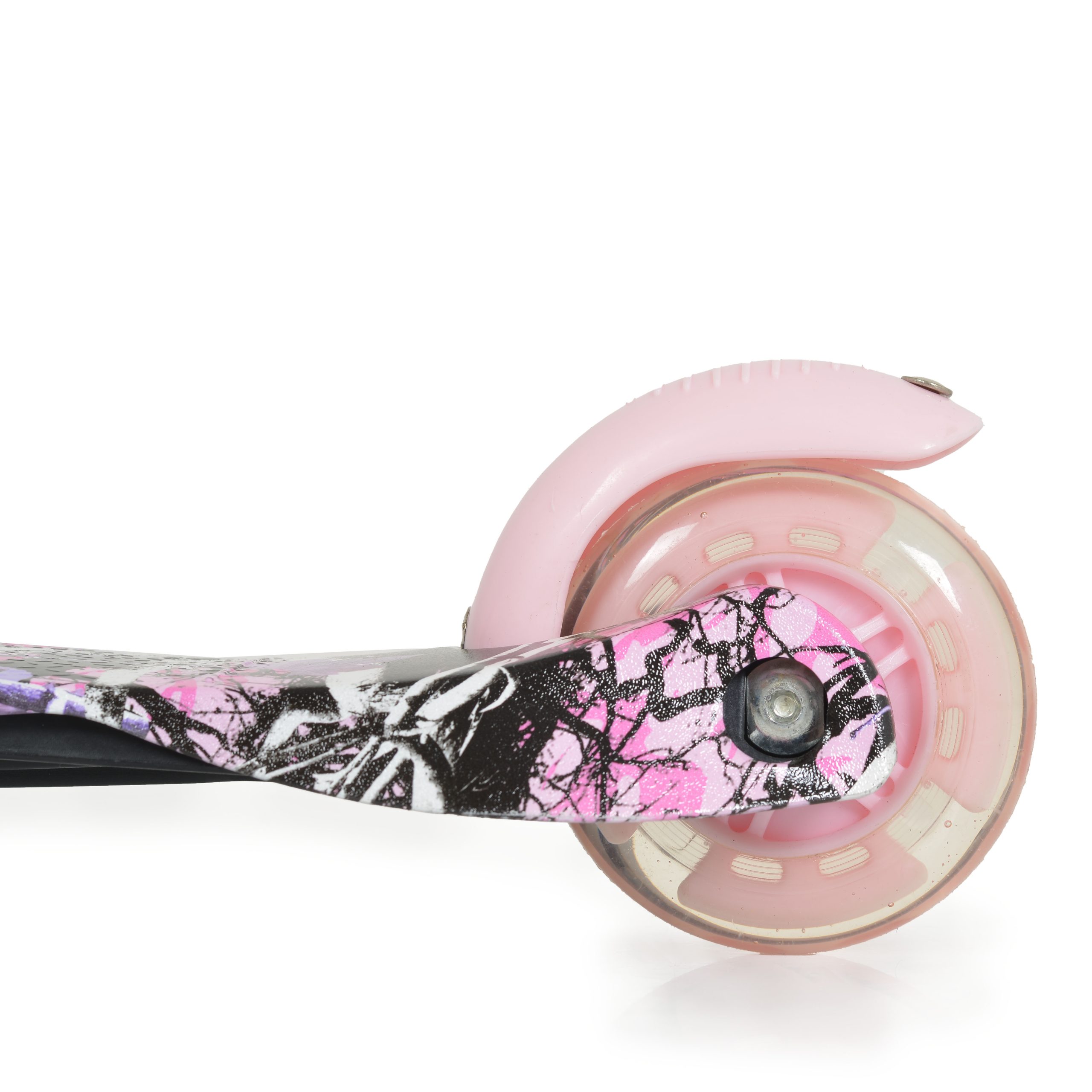 Children scooter with water printed PP deck size 510*113 mm; PU lighting wheels size front 120*24 mm and rear 80*24 mm; Adjustable height of the T-bar from 50 up to 74 cm; Maximum permitted up to 40kg; For children three years older. The toy has been designed and produced in accordance with the requirements of the European Toy Safety Directive 2009/48/EC. This product complies with the general and specific requirements of the European harmonised standards on safety of toys EN 71: BDS EN ISO 71-1:2014+A1:2018; BDS EN 71-2: 2011 + A1: 2014; BDS EN 71-3:2019+A1:2021
