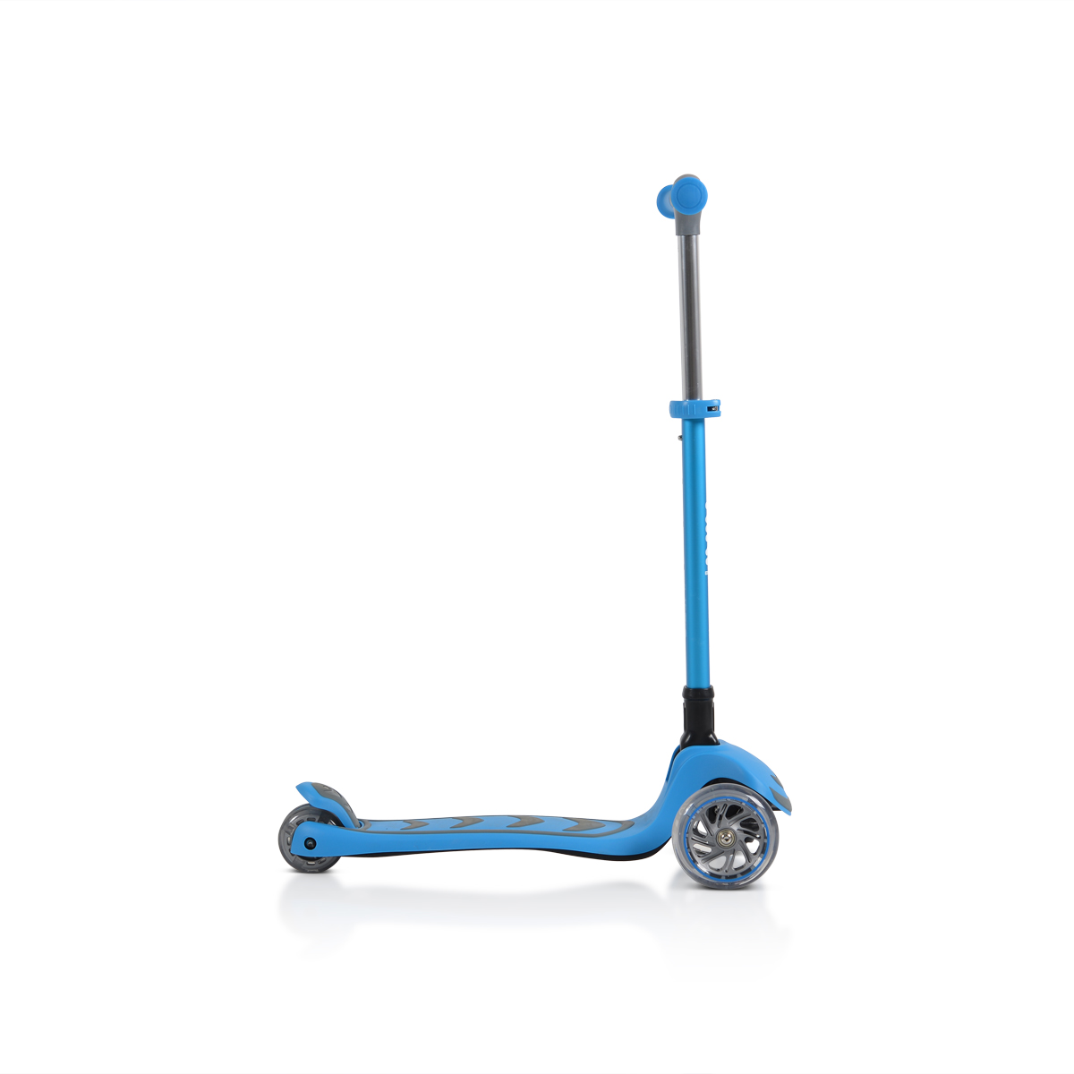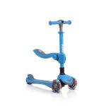 Foldable children scooter with double color PP deck and seat adjustable and foldable The alloy T-bar can be adjusted in 4 different heights for 63 up to 80 cm. Front wheels PU 120*30mm with flash, two rear flashing PU wheels 80*24mm. Maximum loading seat weigh is 20kg, for the deck max load is 50kg, for children 3+ years
