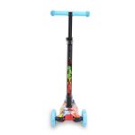 Aluminum scooter with water printed PP deck; PU LED wheels size : front -120*30mm; two rear 80*30mm; Max handlebar height 80.50cm; Max load 40 kg