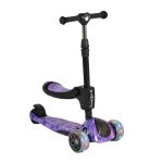 Children`s scooter with seat, sound and lights. 3 levels of handlebar height adjustment from 67 to 77 cm. PP body and seat; 3D lights; Adjustable volume; Adjustable seat height; PU light-up wheels.