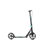 Aluminum foldable scooter with PU wheels 200*30 mm, ABEC-7 bearings, front suspention ; handle rear brake; side stand ; quick folding mechanism; handlebar size 41 cm with TPR grips; deck size 525*110 mm with sandpaper cover ; handlebar height 95 cm; for age 8+ and max weight up to 100 kg