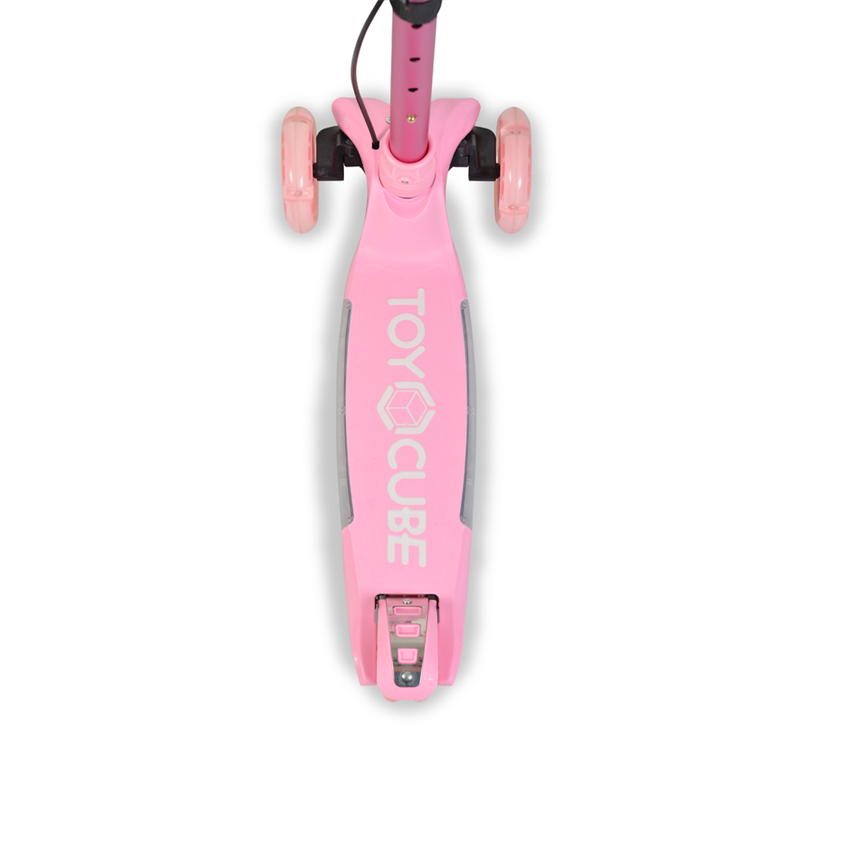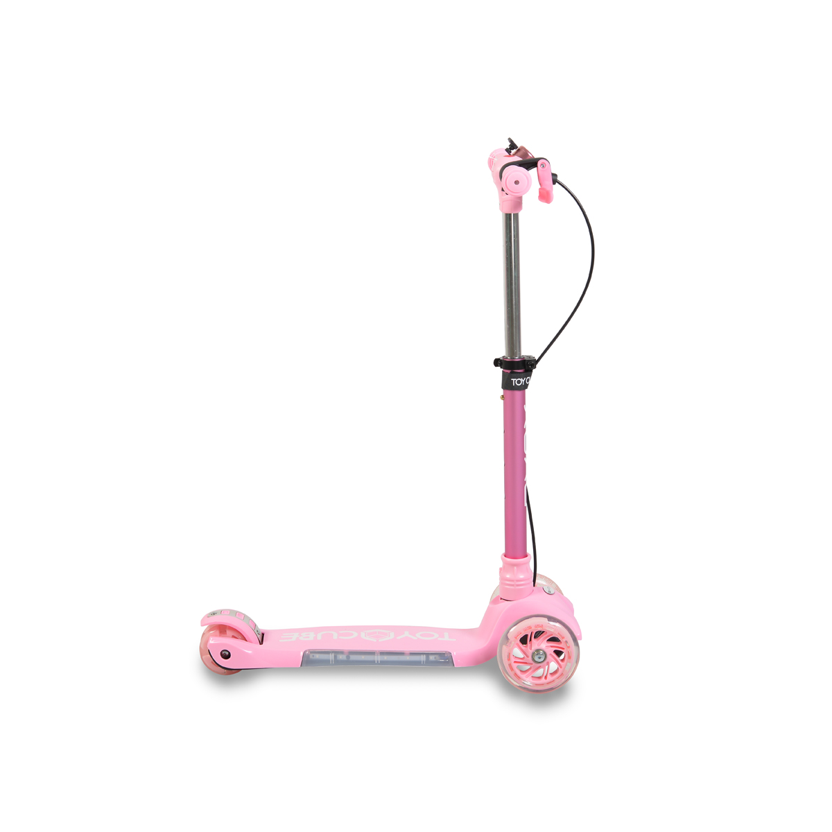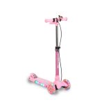 Children foldable scooter with adjustable height of the handlebar from 62 to 78 cm; Platform made of PP material; Front wheels 120*30 mm PU lighting; Rear wheel 80*24 mm PU with lights; Flashing lights on both sides of the deck; Music melody ;Front light; aluminum bell; Handle rear brake; max weight up to 50 kg; for children 3-6 years old
