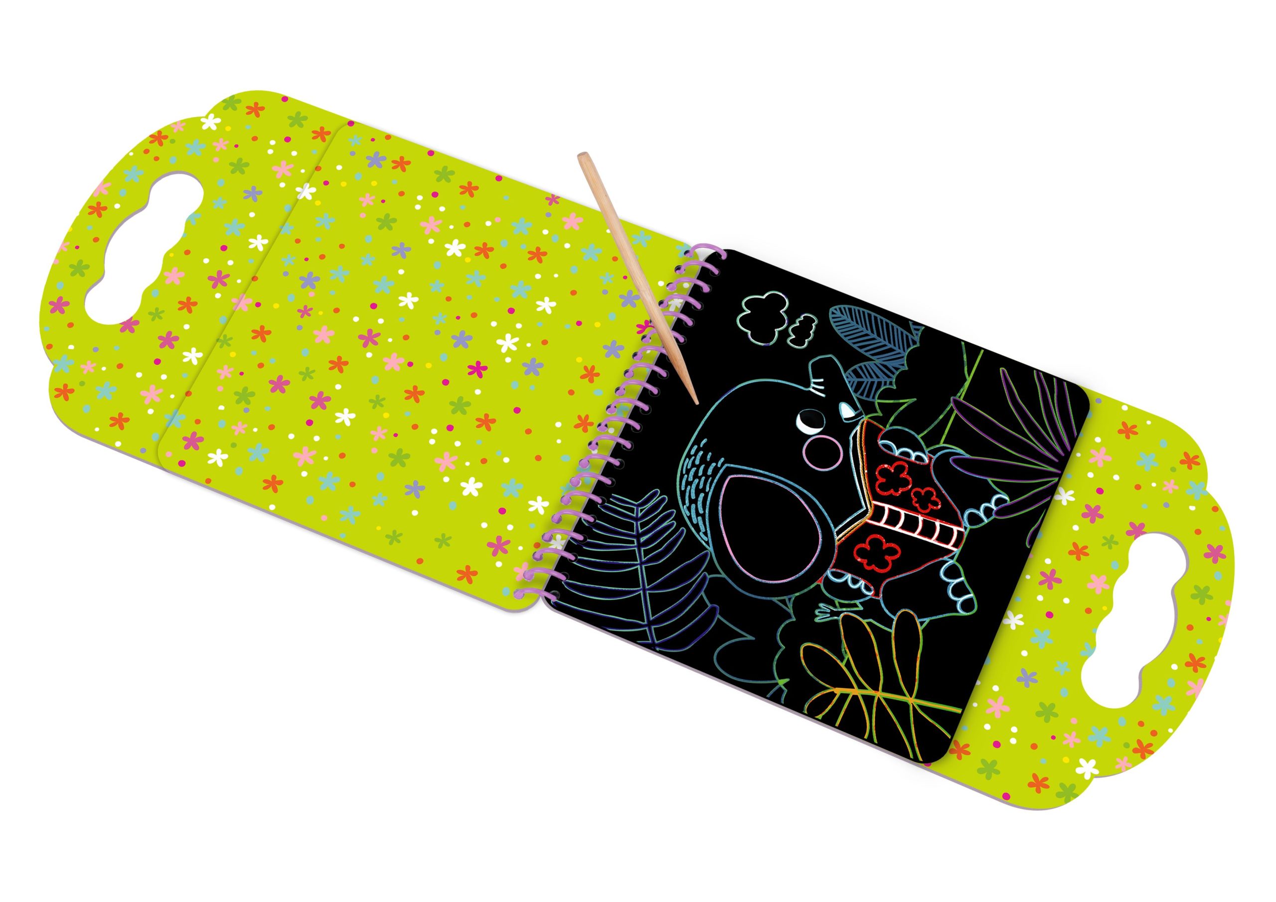 Children`s scratch book, including 6 pages with different animals. In the set there is also a wooden pencil with which you can rub the pictures.