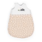 Gentle baby sleeping bag made of high quality cotton ranforce and cotton jersey. Filling: light polyester wool. Suitable for babies from 0 to 6 months. Unfastening all over the country with zipper. Easy fastening of the straps with press-studs.TOG value 3.3.