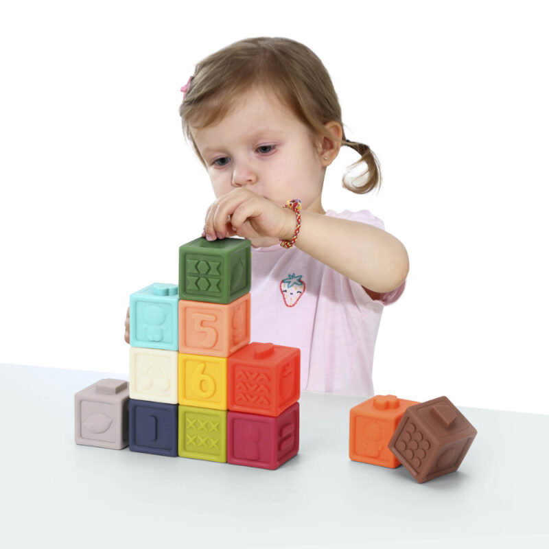 These silicone cubes will become a favorite of every baby. They will grow with your child; babies can use them as teething or sorting toys. The soft silicone makes it easy for little hands to handle. As they grow, this can be used to recognize colors. Each side of the block has a number, +or- sign and different pattern textures. They come in a convenient reusable bag.