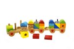 Wooden colored train for sorting. The different figures of the train are removable, and at the base there are stringing elements. The child will have the opportunity to build different colored carriages on his train, developing his fine motor skills, coordination and imagination.